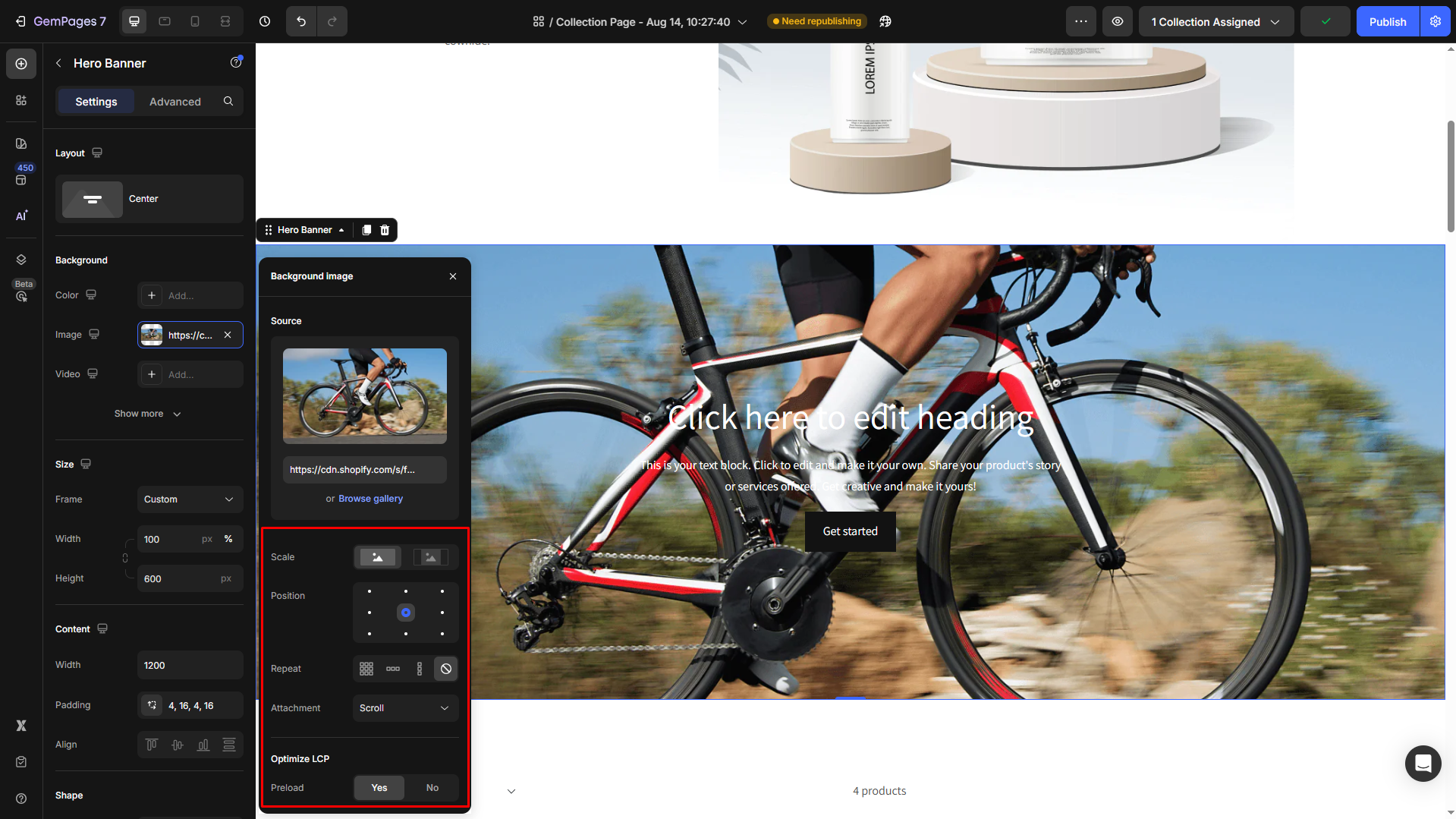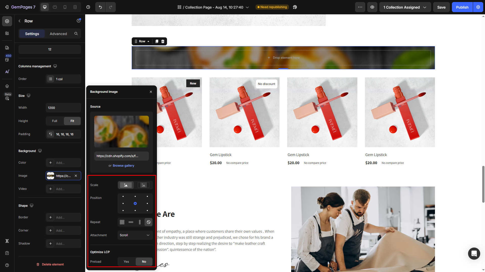 Then, adjust the scale and position, choose the image’s repeat type and attachment, and enable/disable the Preload feature to optimize LCP.
