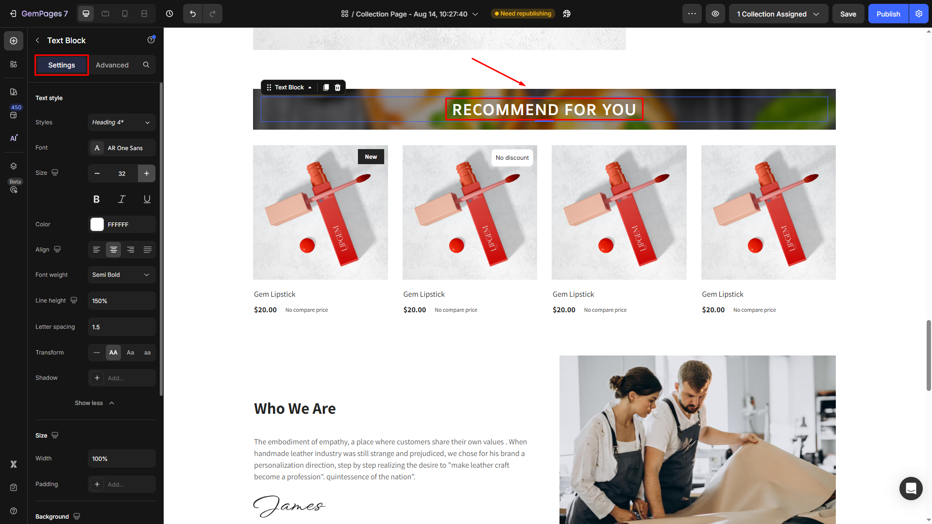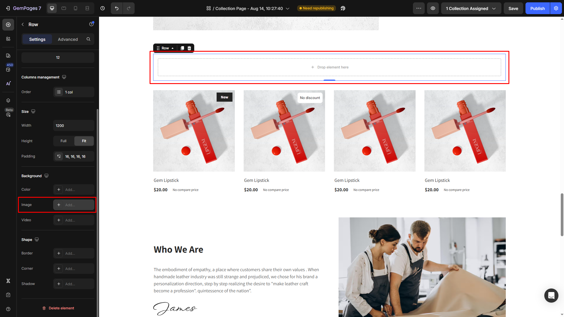 From the GemPages Dashboard, navigate to the Pages, and click on the target page to open the editor.
