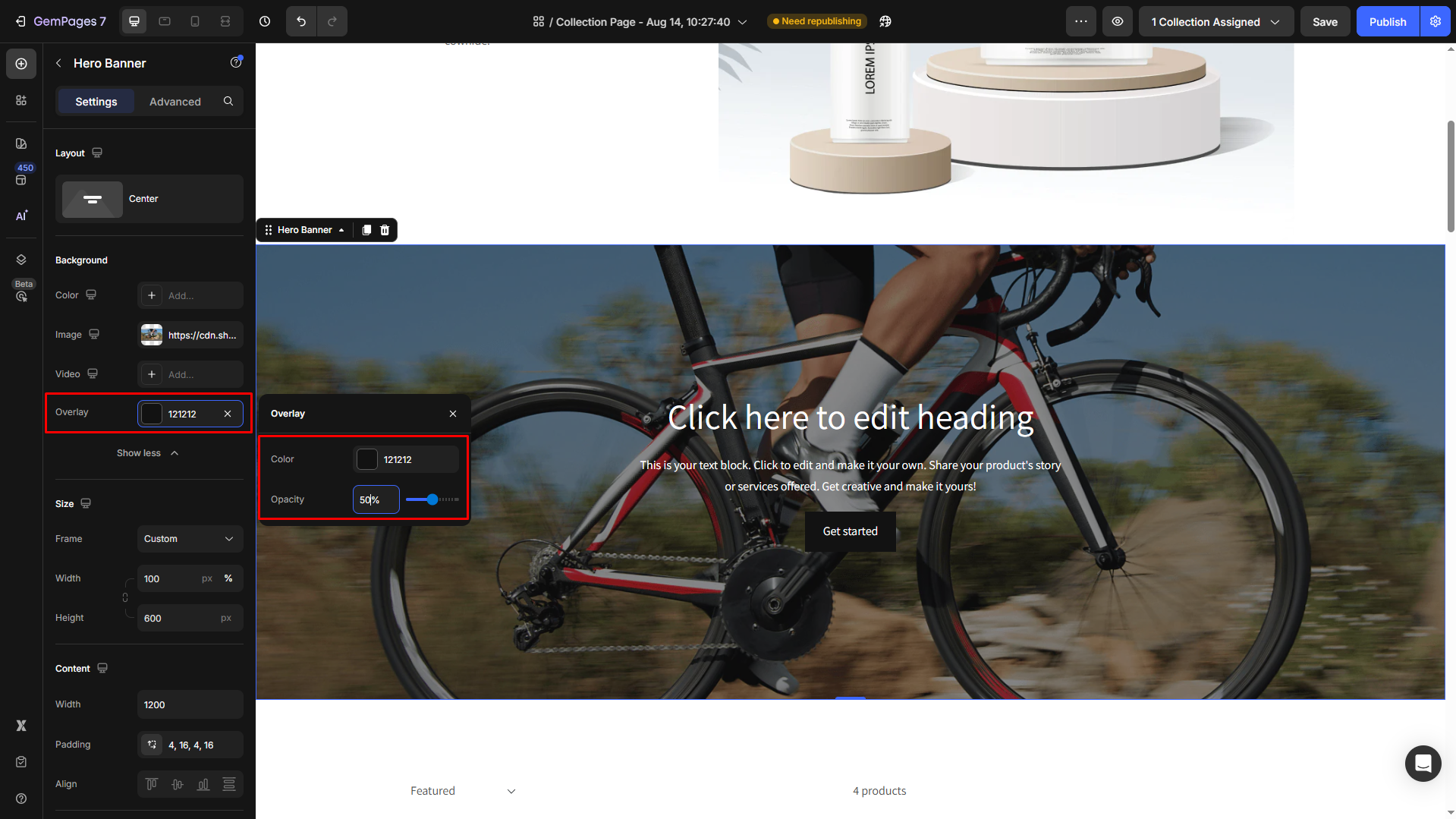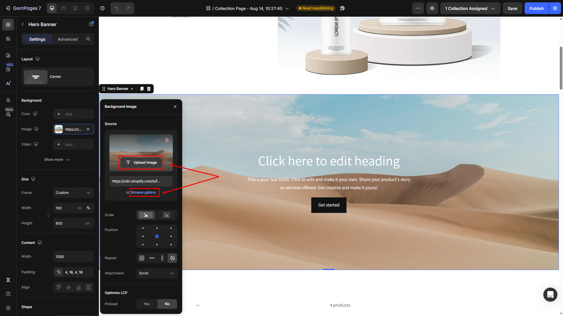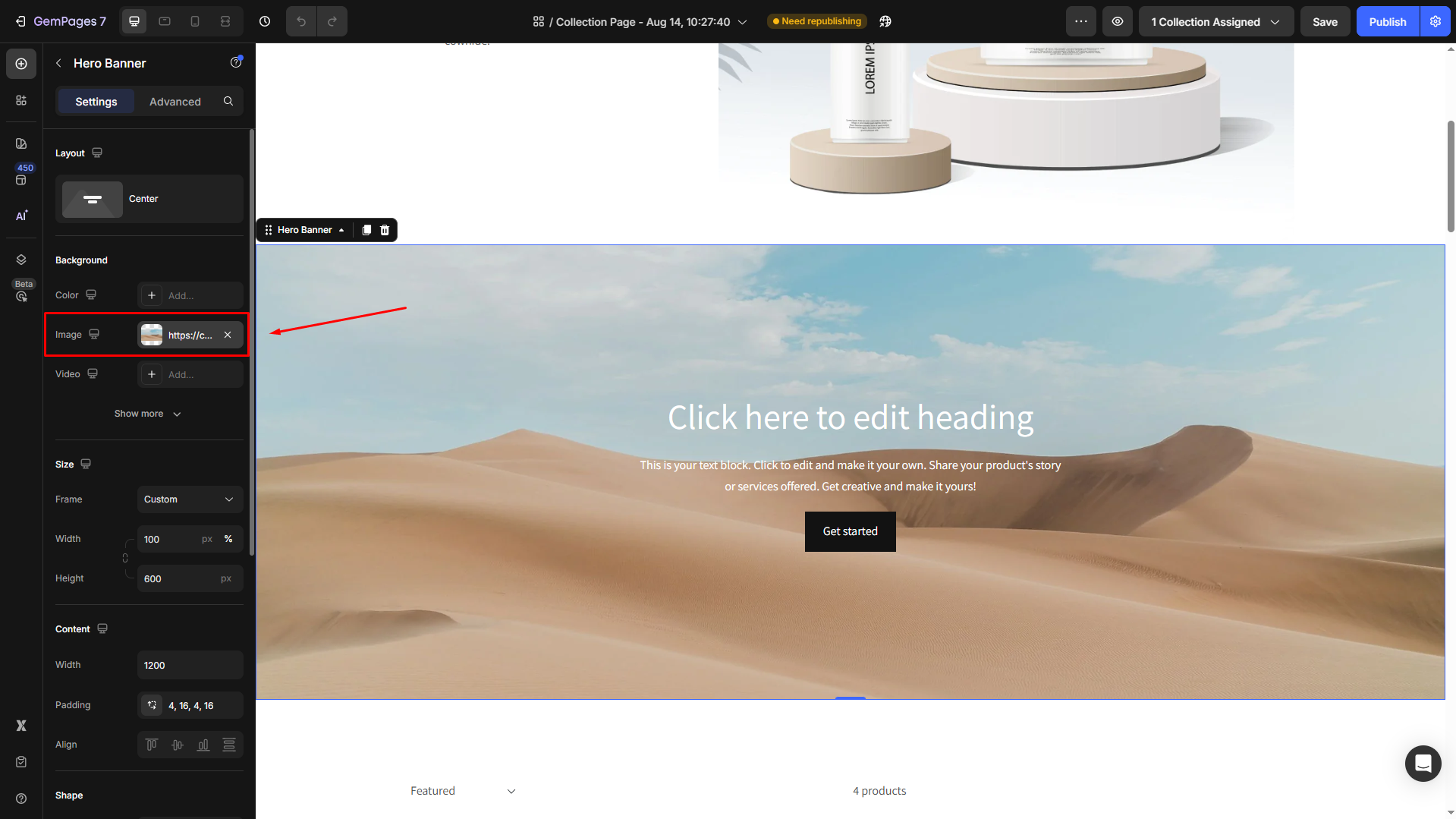 - Modify the image’s settings as you prefer. Refer to this article for more details about configuring your image background in the Hero Banner.