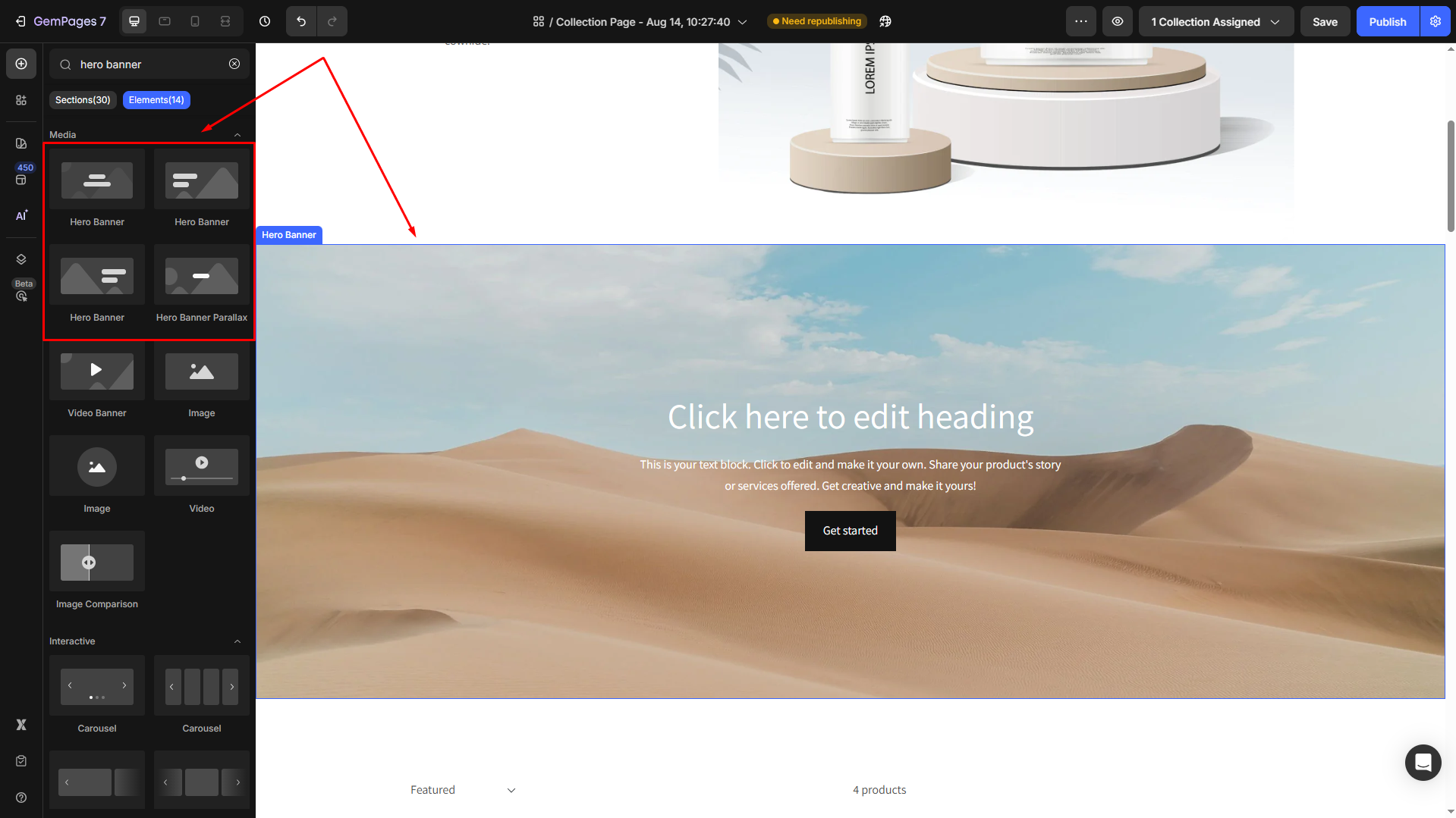 In the left sidebar, find the Hero Banner element under the Media section, then drag and drop it to any position on your page.