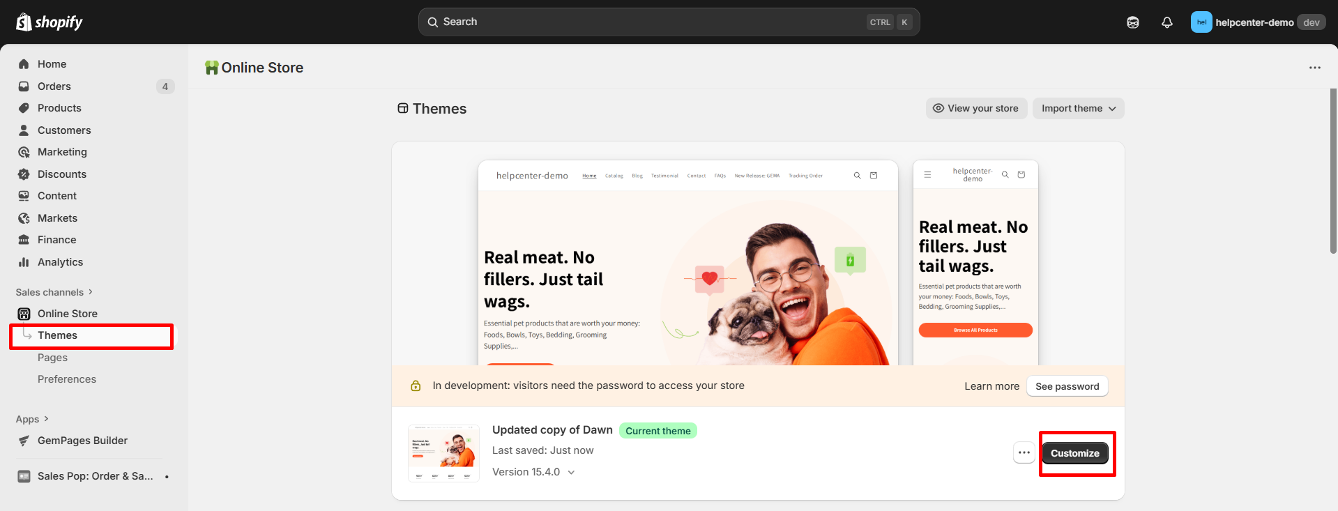 - Navigate to your Shopify admin menu, then click Online Store > Themes > Customize.