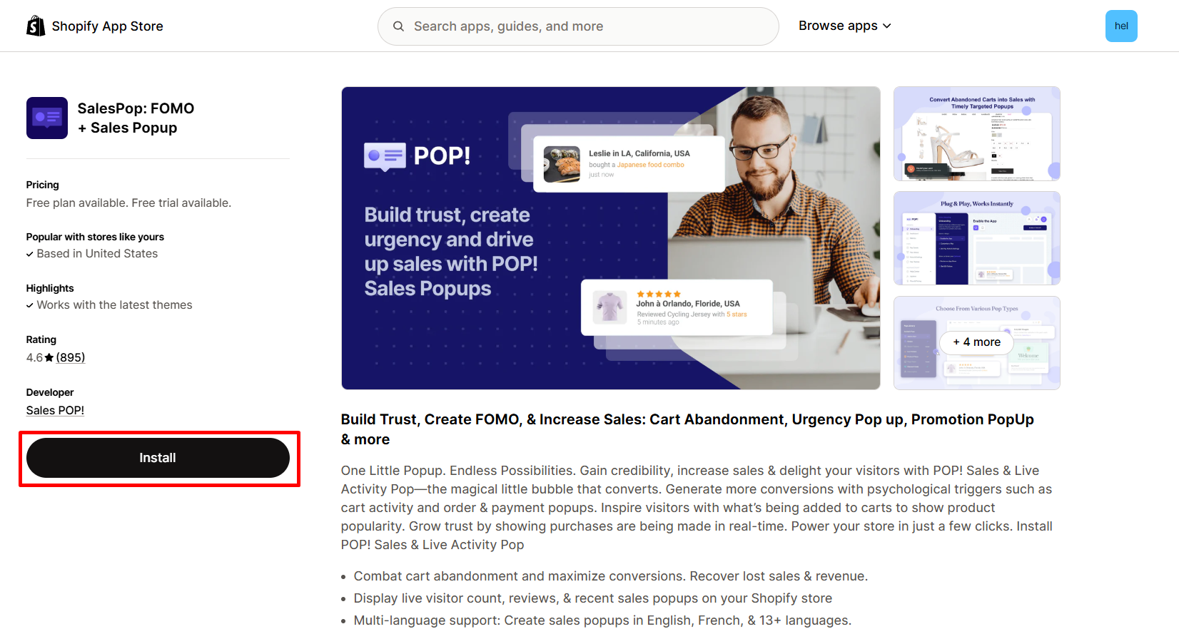 Step 1: Install SalesPop: FOMO + Sales Popup in the Shopify App Store.