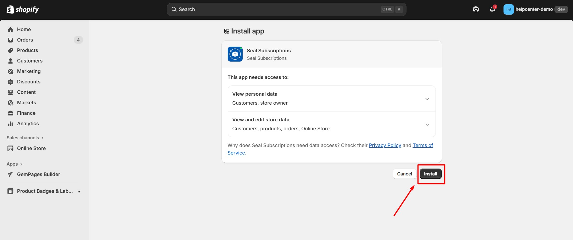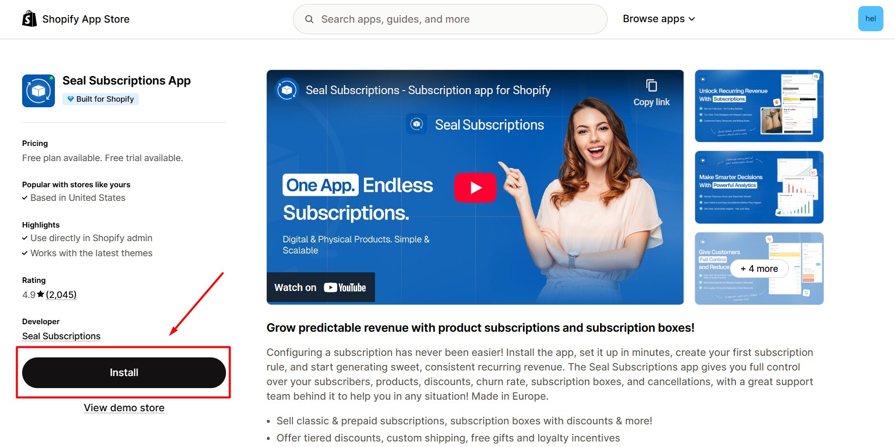 Step 1: Install the Seal Subscriptions App from the Shopify App Store.