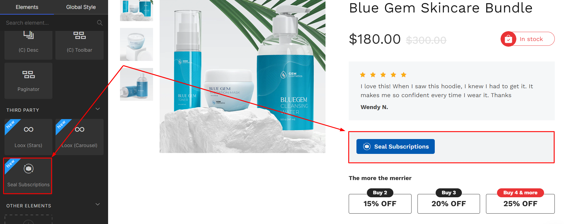 Step 2: Drag & drop the Seal Subscriptions element from the left sidebar to the desired area.