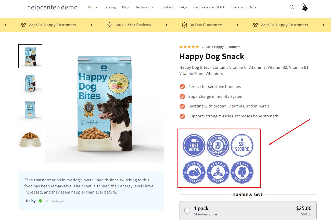 - Flexible placement: Customize where badges appear on your page for maximum visibility.