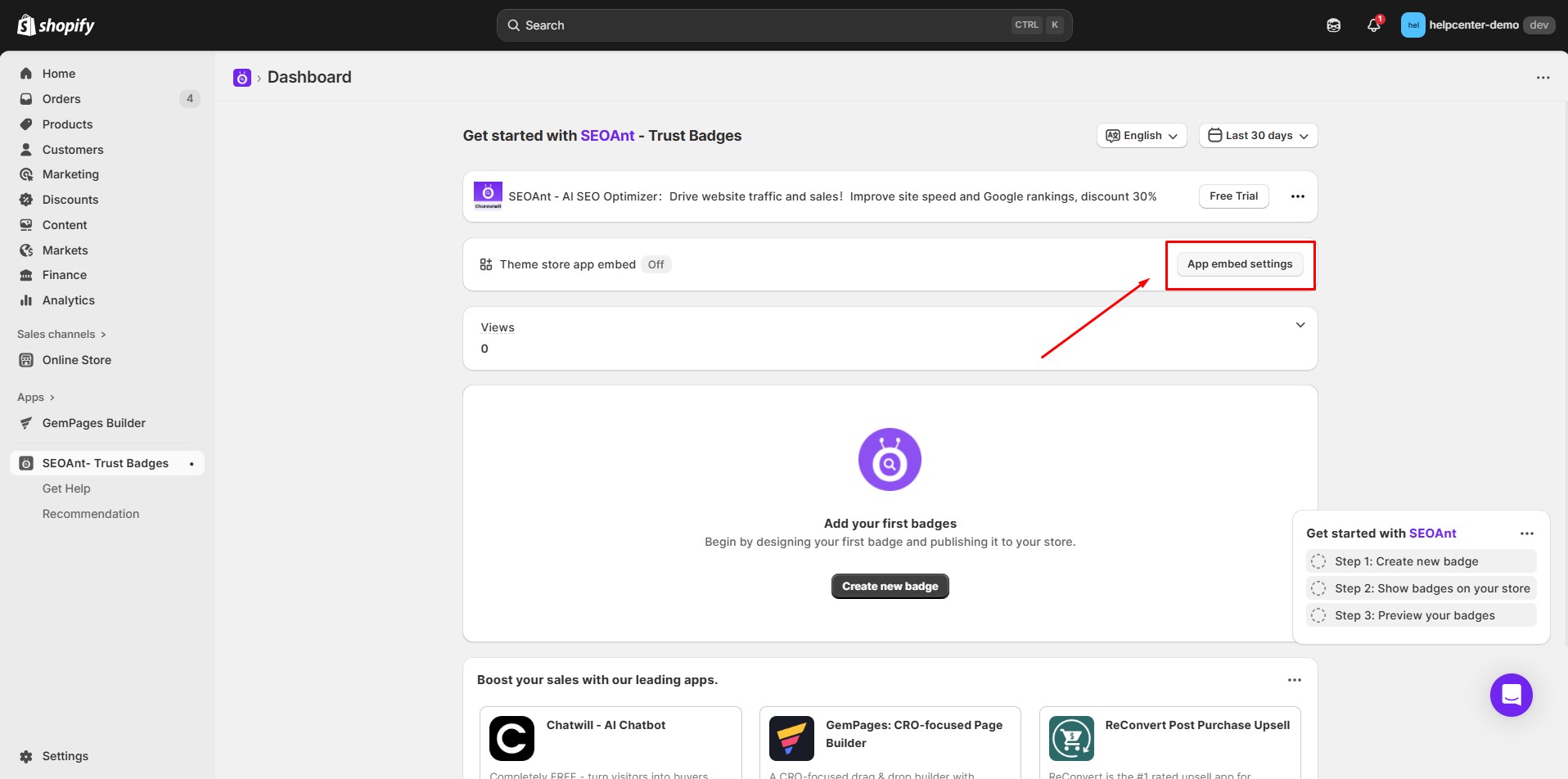 This article reveals how to integrate the SEOant ‑ Trust Badges & icon with GemPages to elevate your store’s performance.