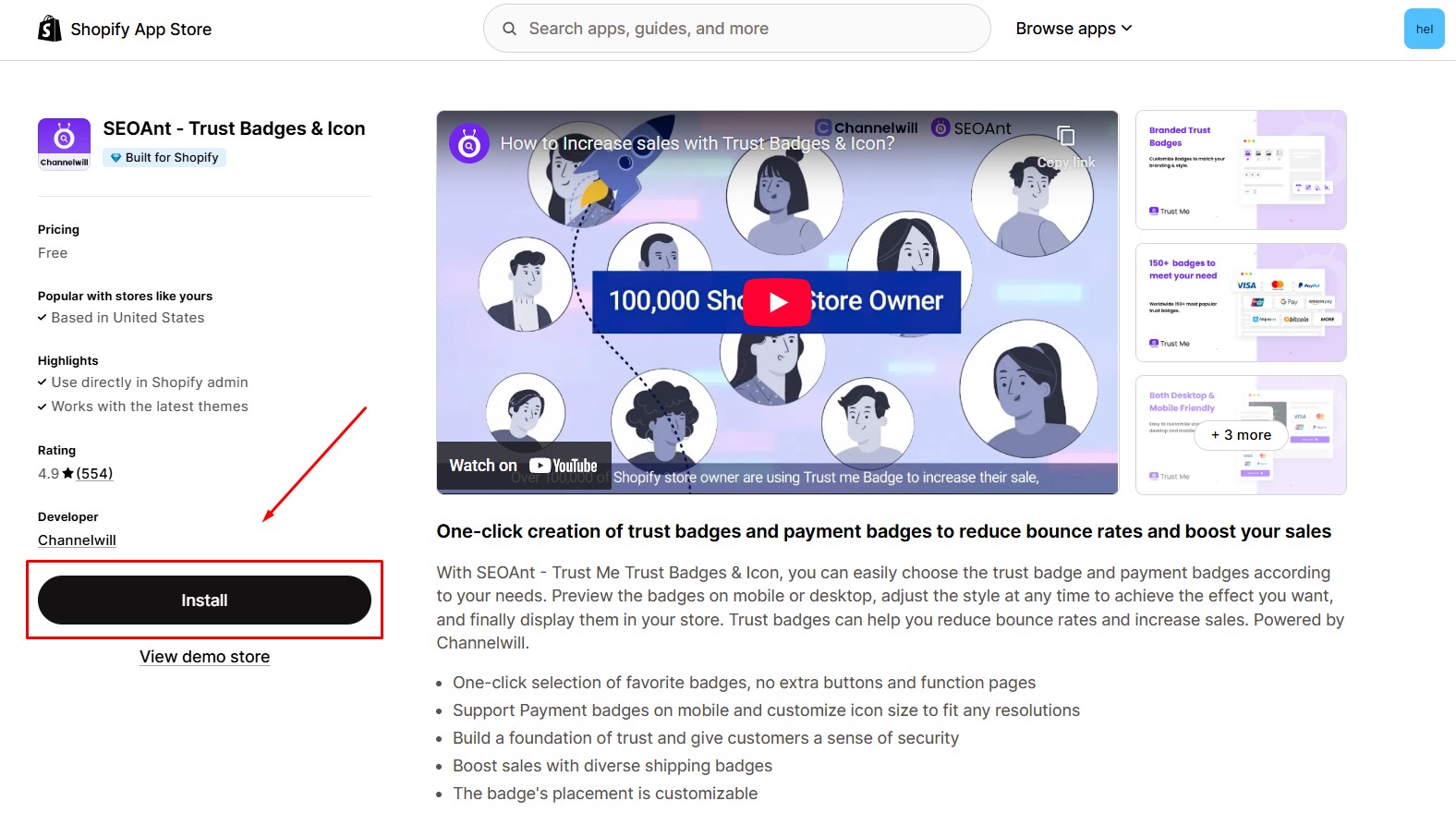 Step 1: Install SEOant ‑ Trust Badges & icon app from the Shopify app store.