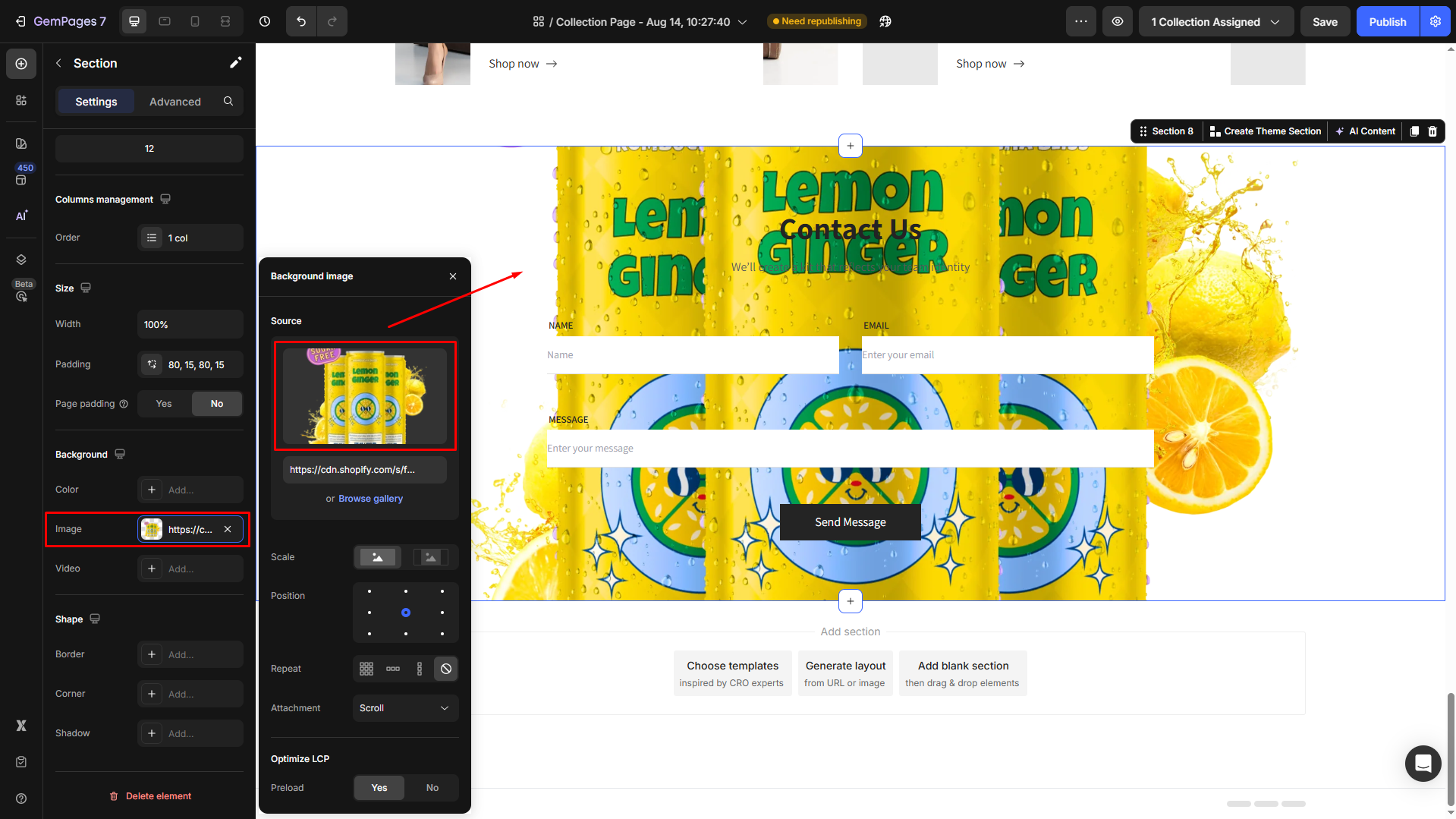 Background settings let you define the overall look and feel of your page. With GemPages, you can: