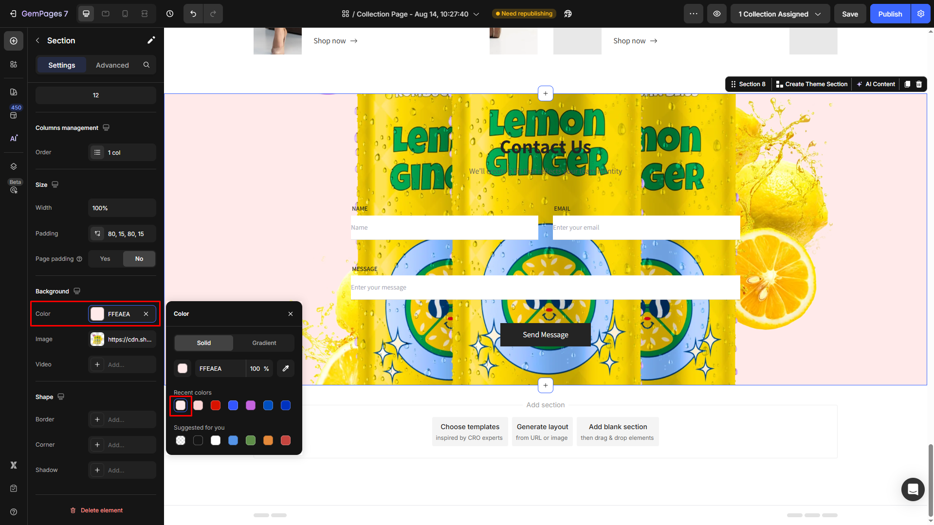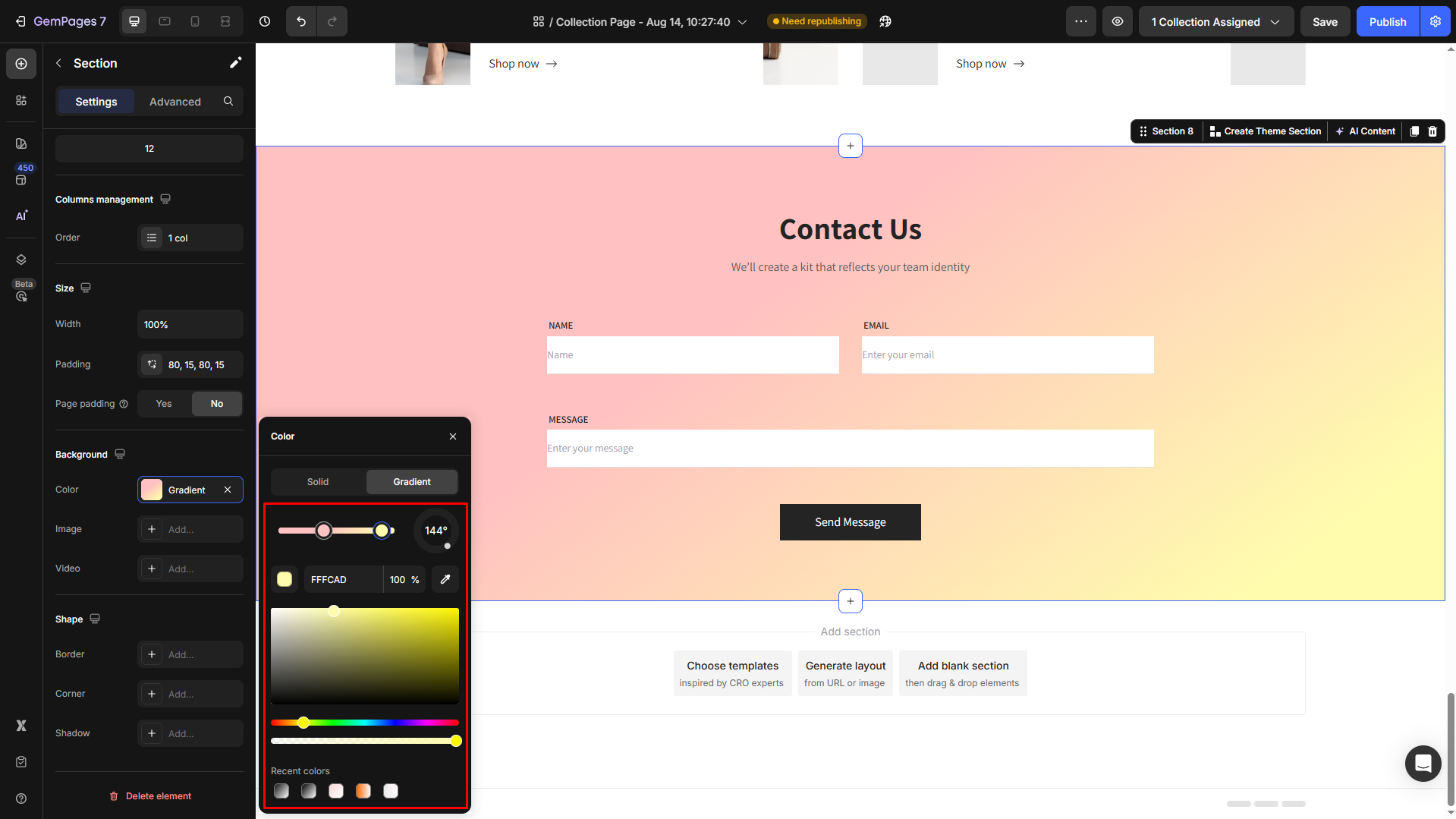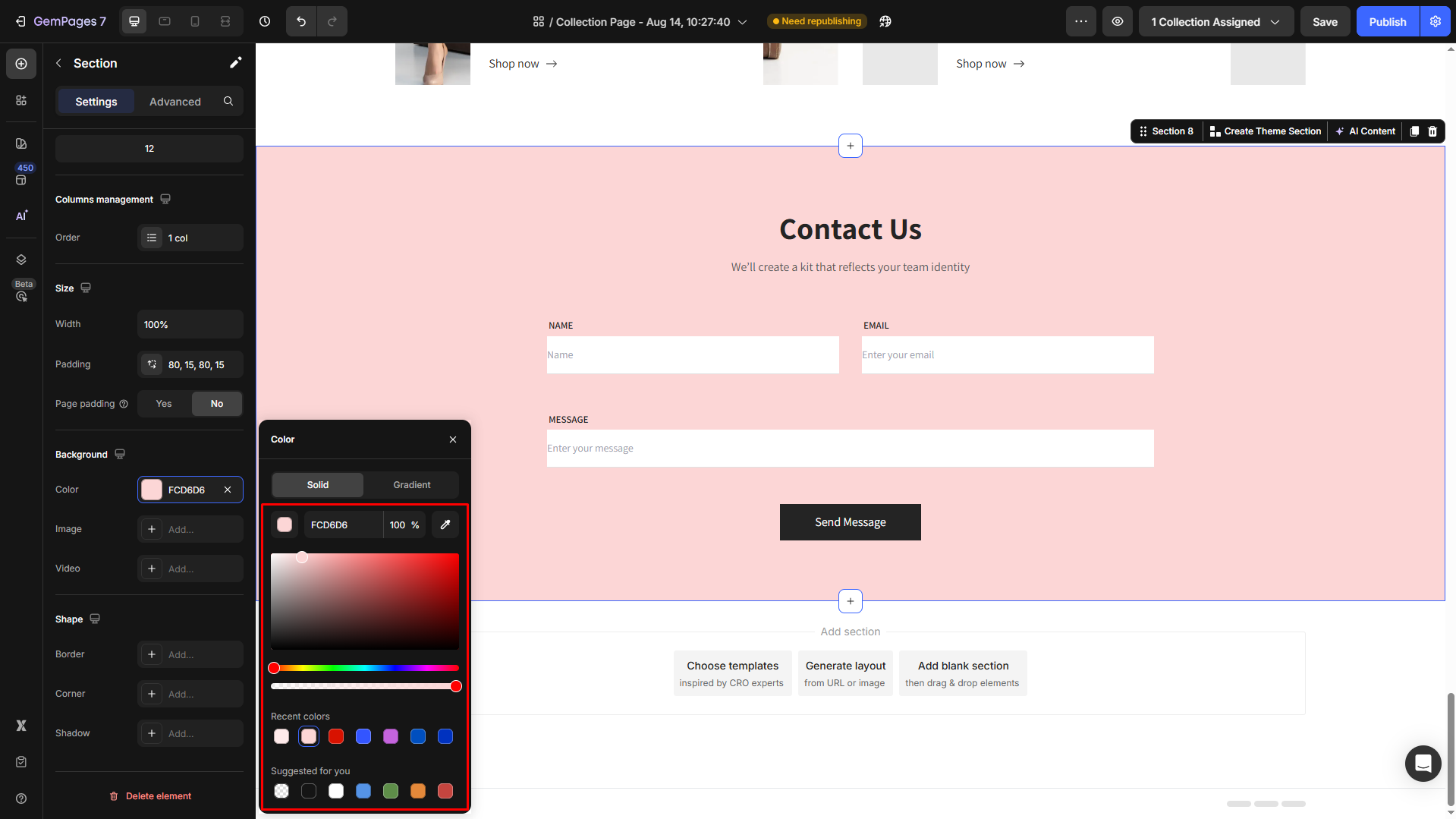 In GemPages v7, it’s easy to apply a solid color or gradient to the background of your page or a specific section.