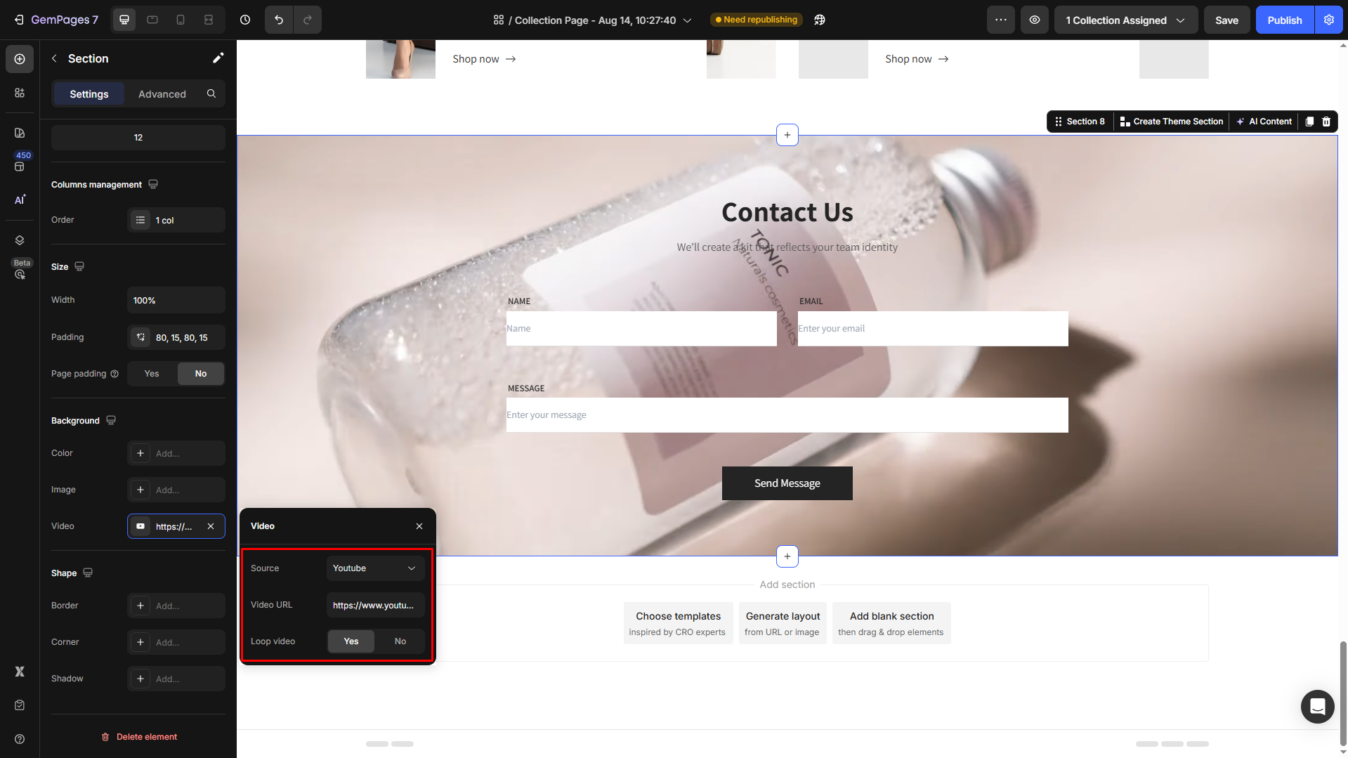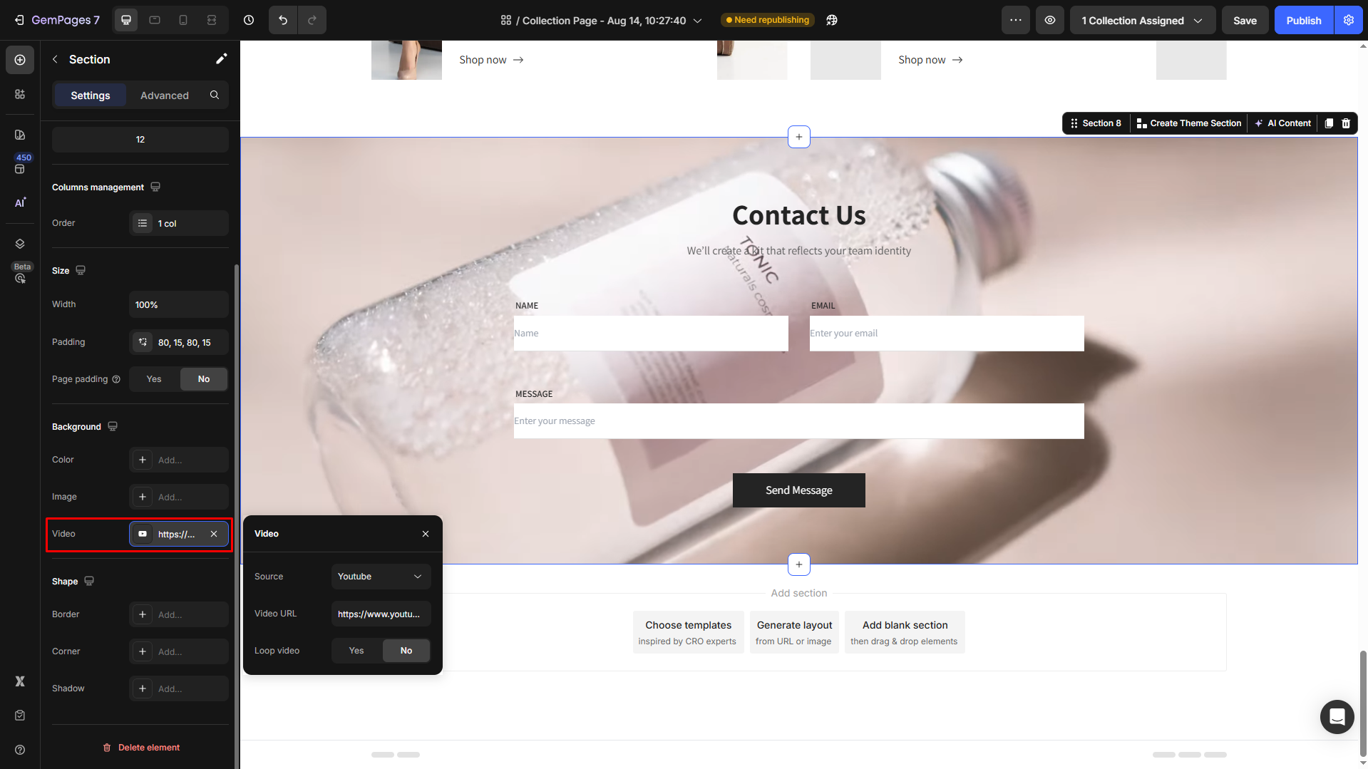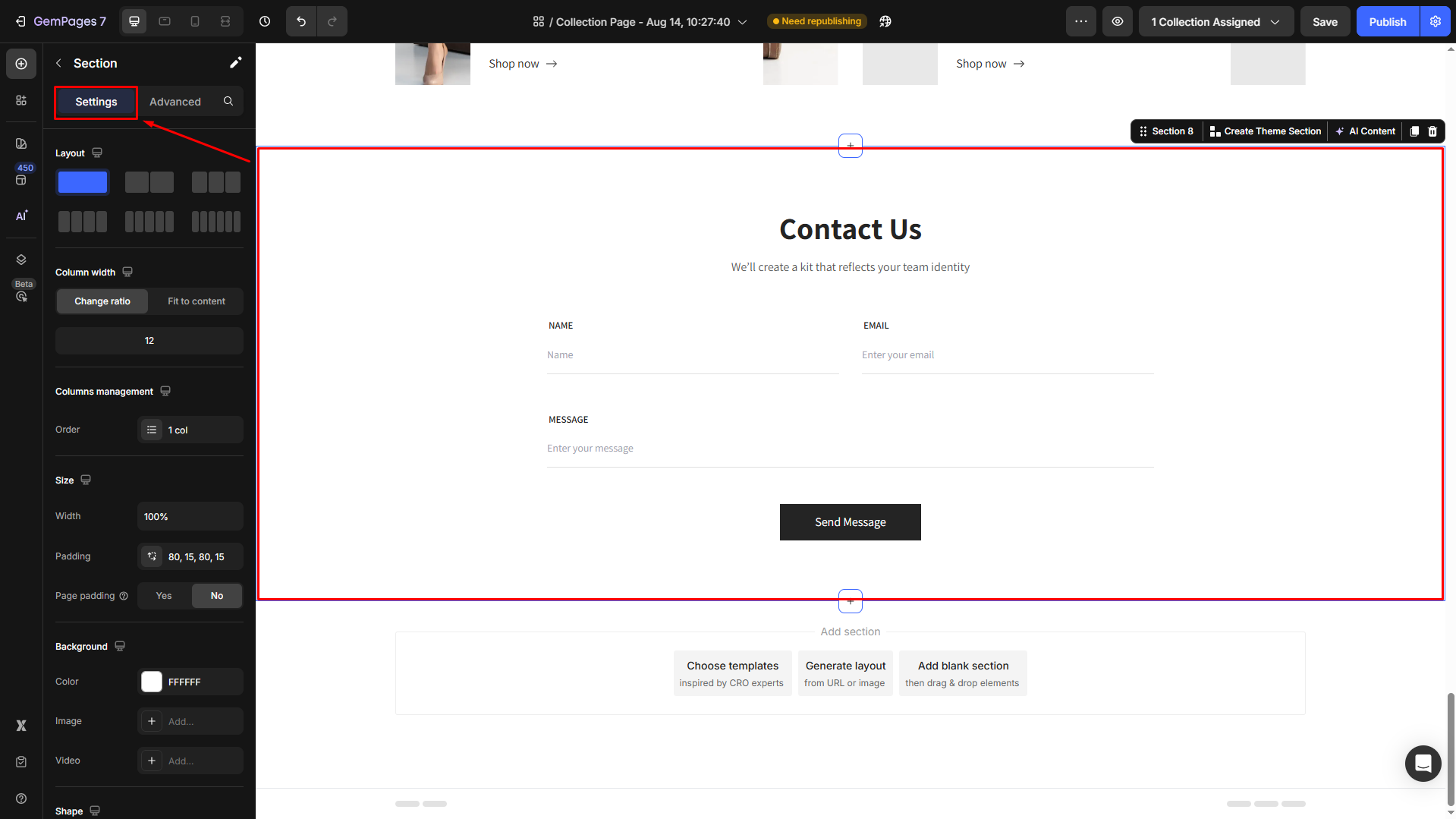 In GemPages v7, it’s easy to apply a solid color or gradient to the background of your page or a specific section.
