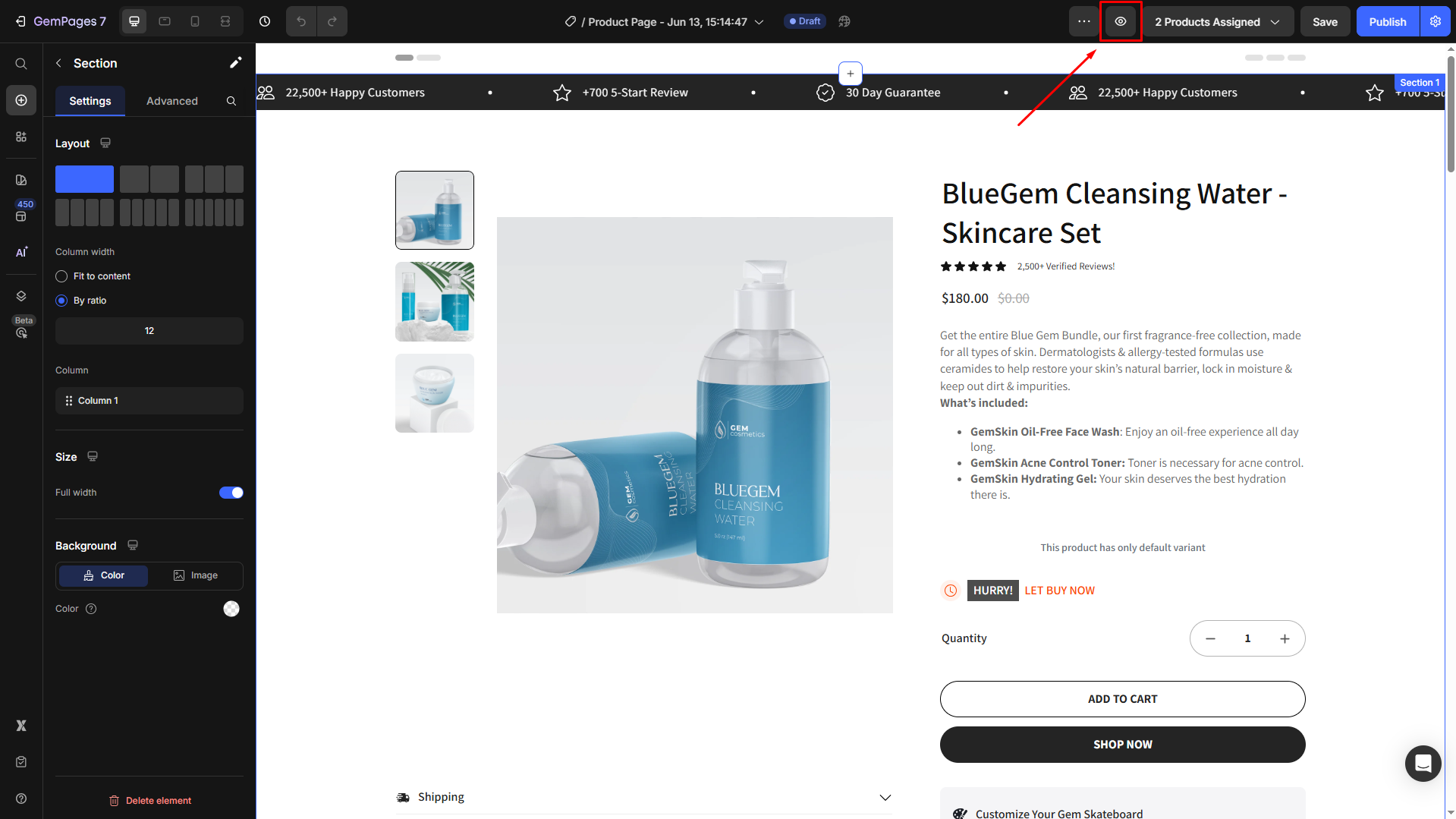 GemPages allows you to preview and share your draft product pages before publishing. This is especially useful for collecting feedback from teammates or clients during the design process.
