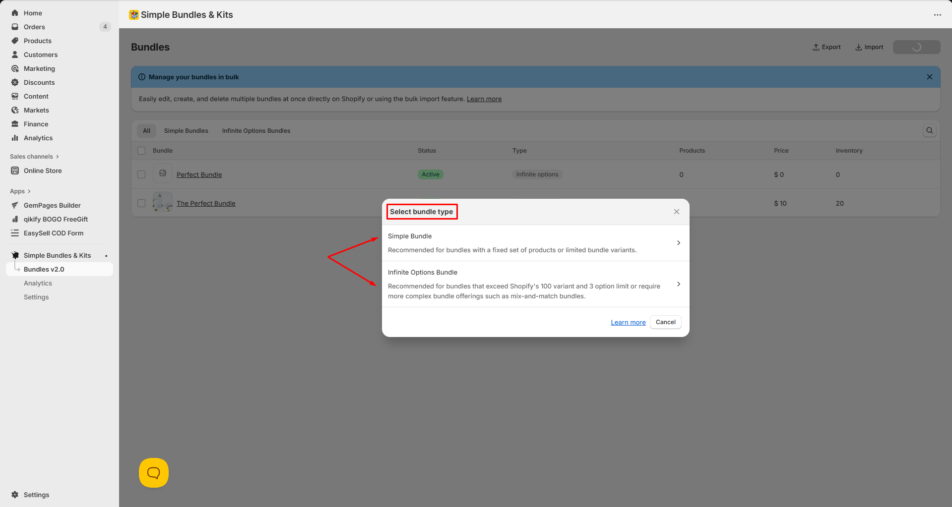 Step 4: Choose your preferred bundle type: Simple Bundle or Infinite Options Bundle
