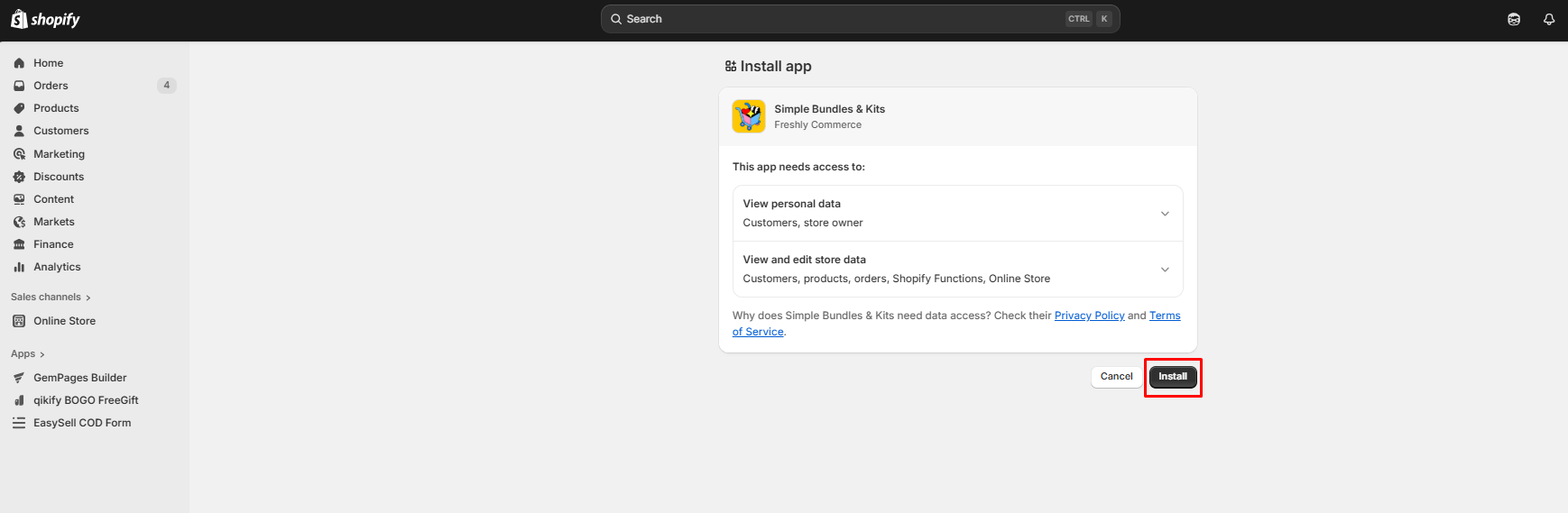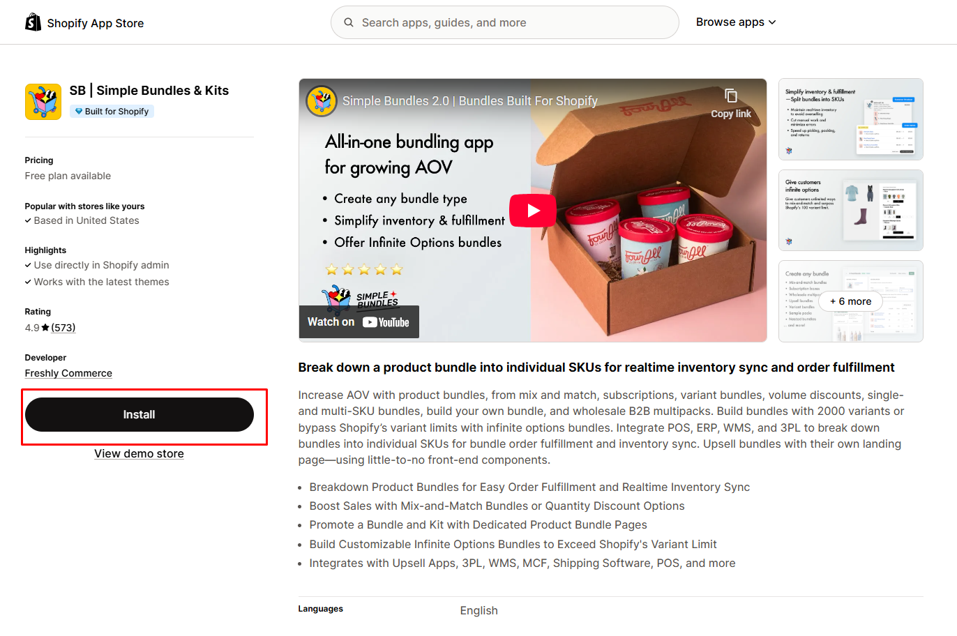 Step 1: In the Shopify App Store, find the Simple Bundles & Kits app and click Install.
