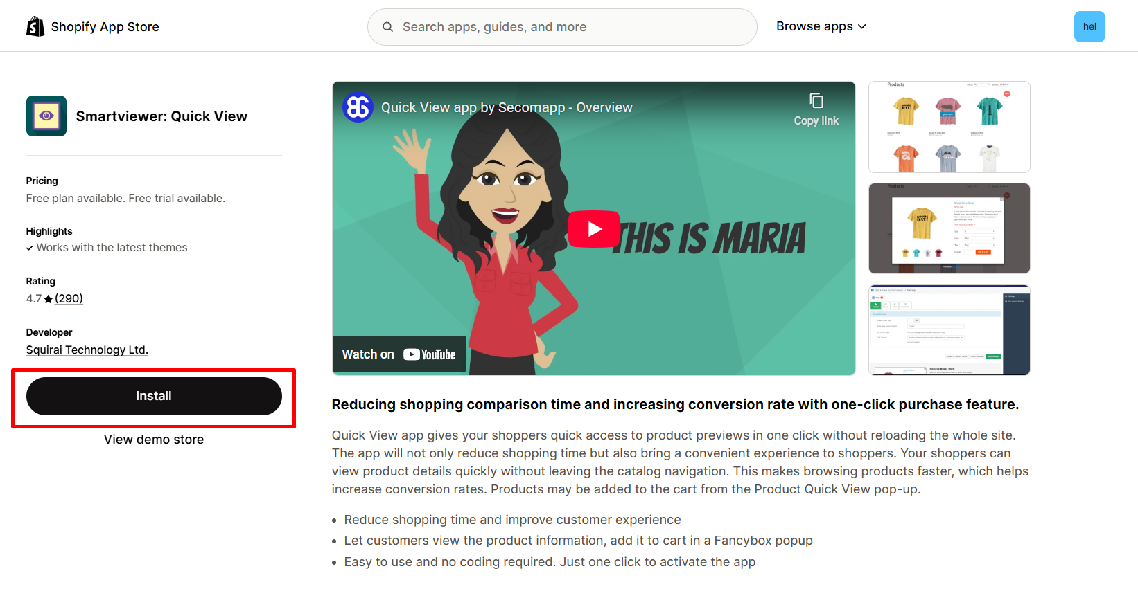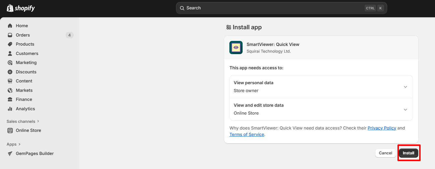 Step 1: Install SmartViewer: Quick View in the Shopify App Store.