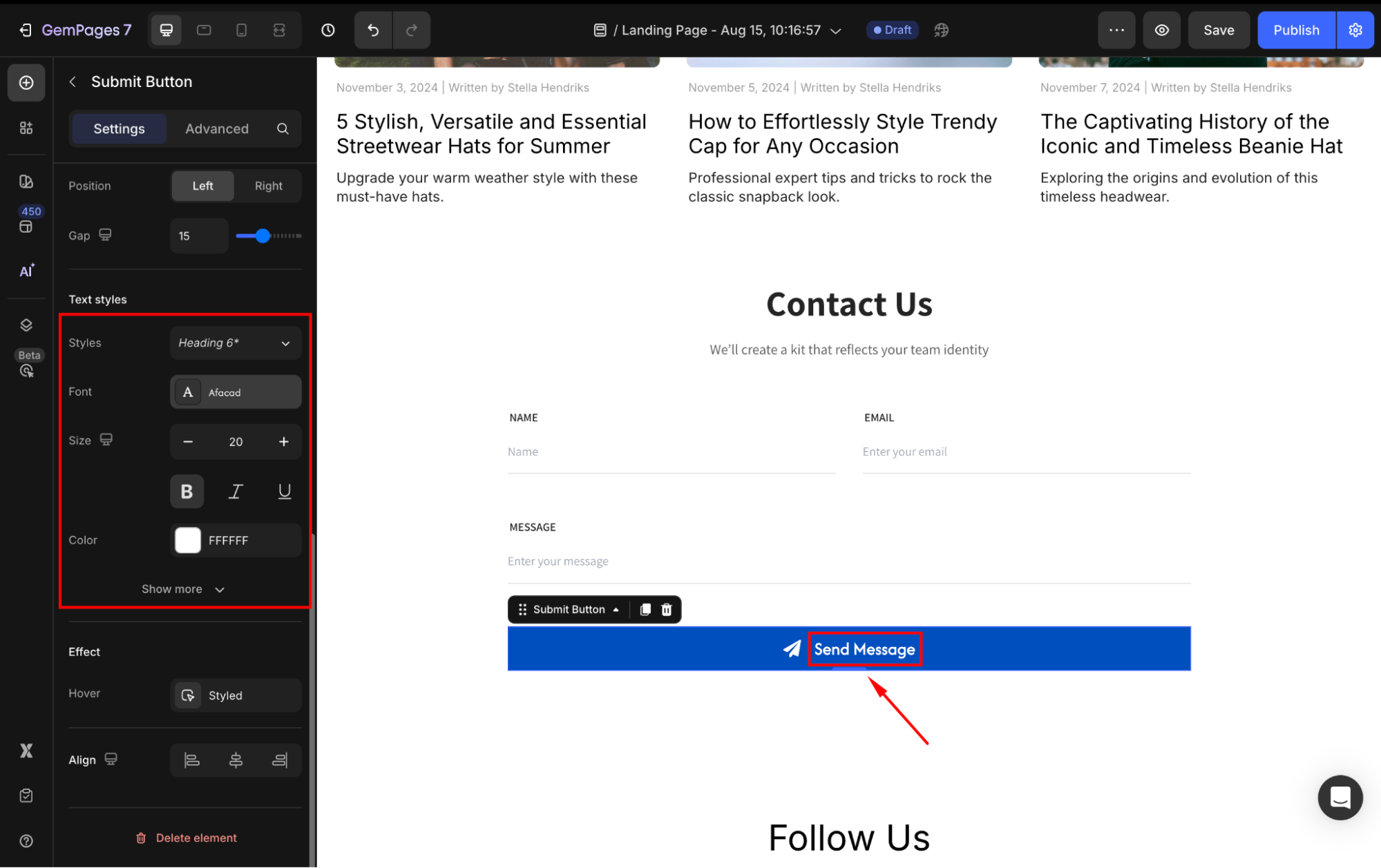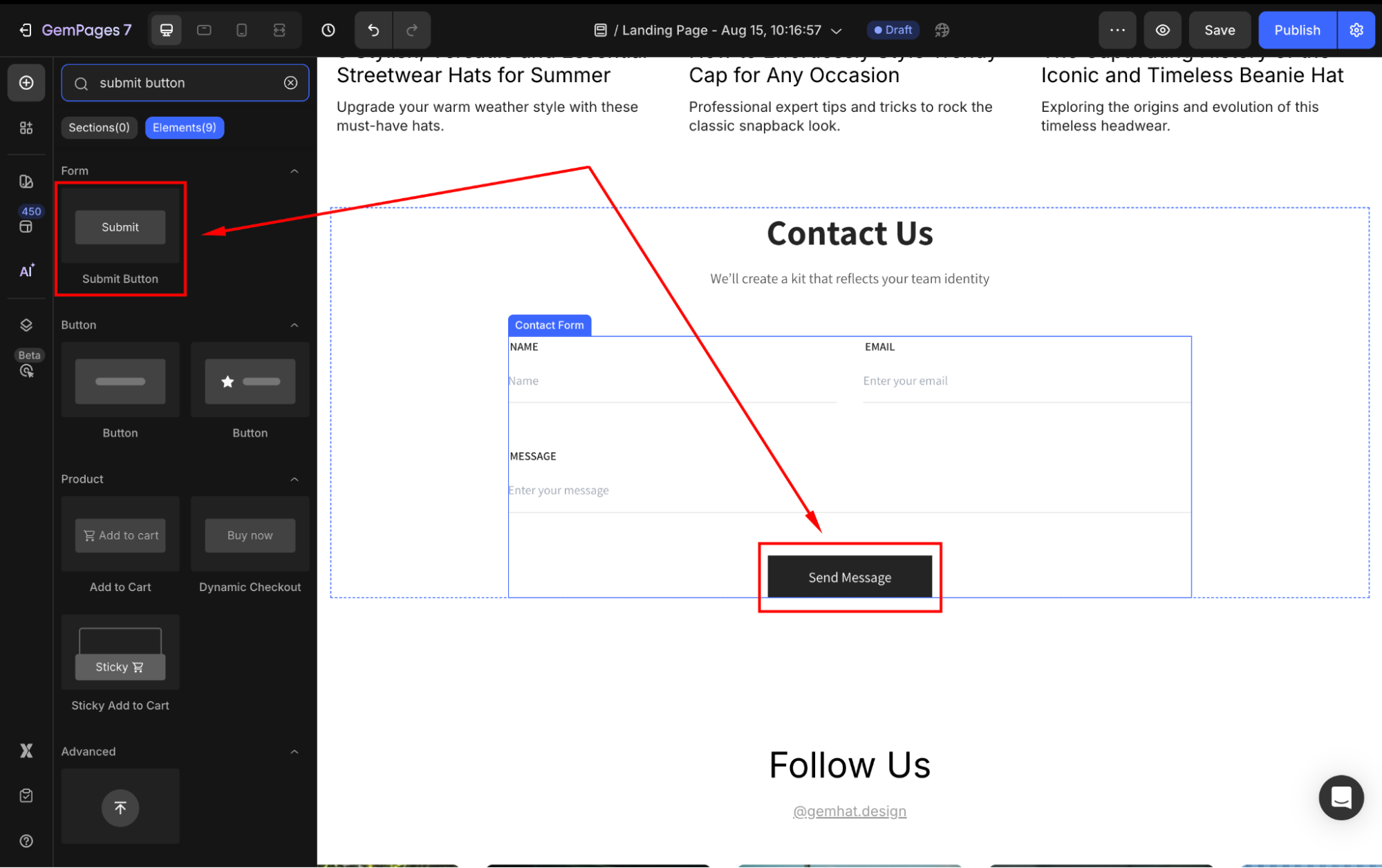 Step 2: From the left sidebar, search for “submit button”, then drag & drop it into a Newsletter or a Contact Form element.