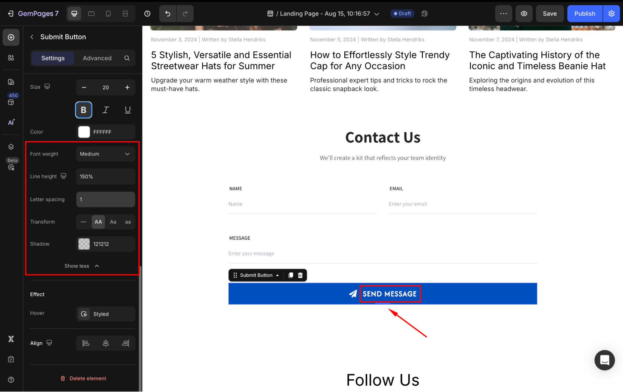 - Shadow: Apply a shadow effect to give the button more depth when hovered.