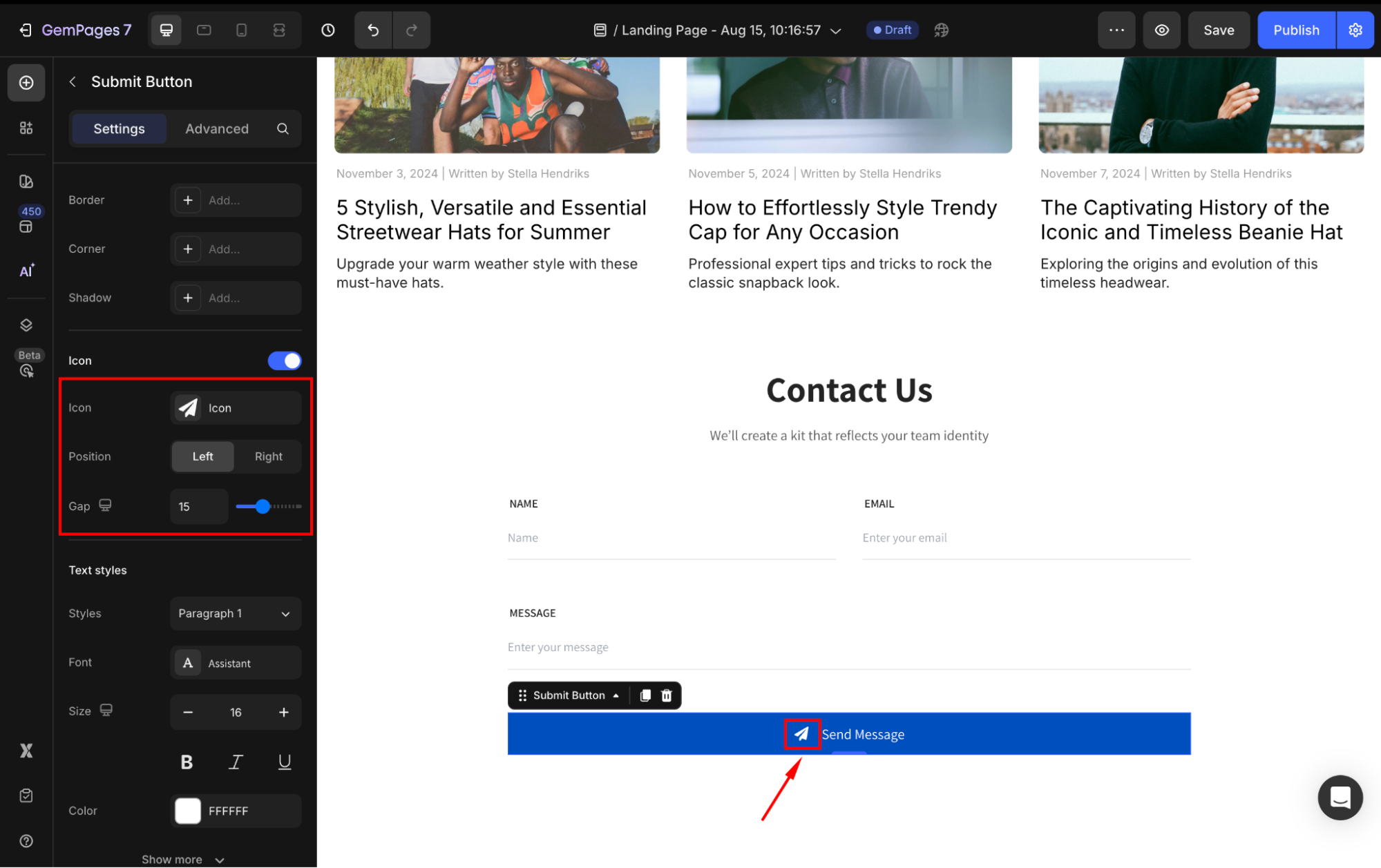 To add an icon in the Submit Button element, toggle on the Icon section and customize the icon your way in the settings.