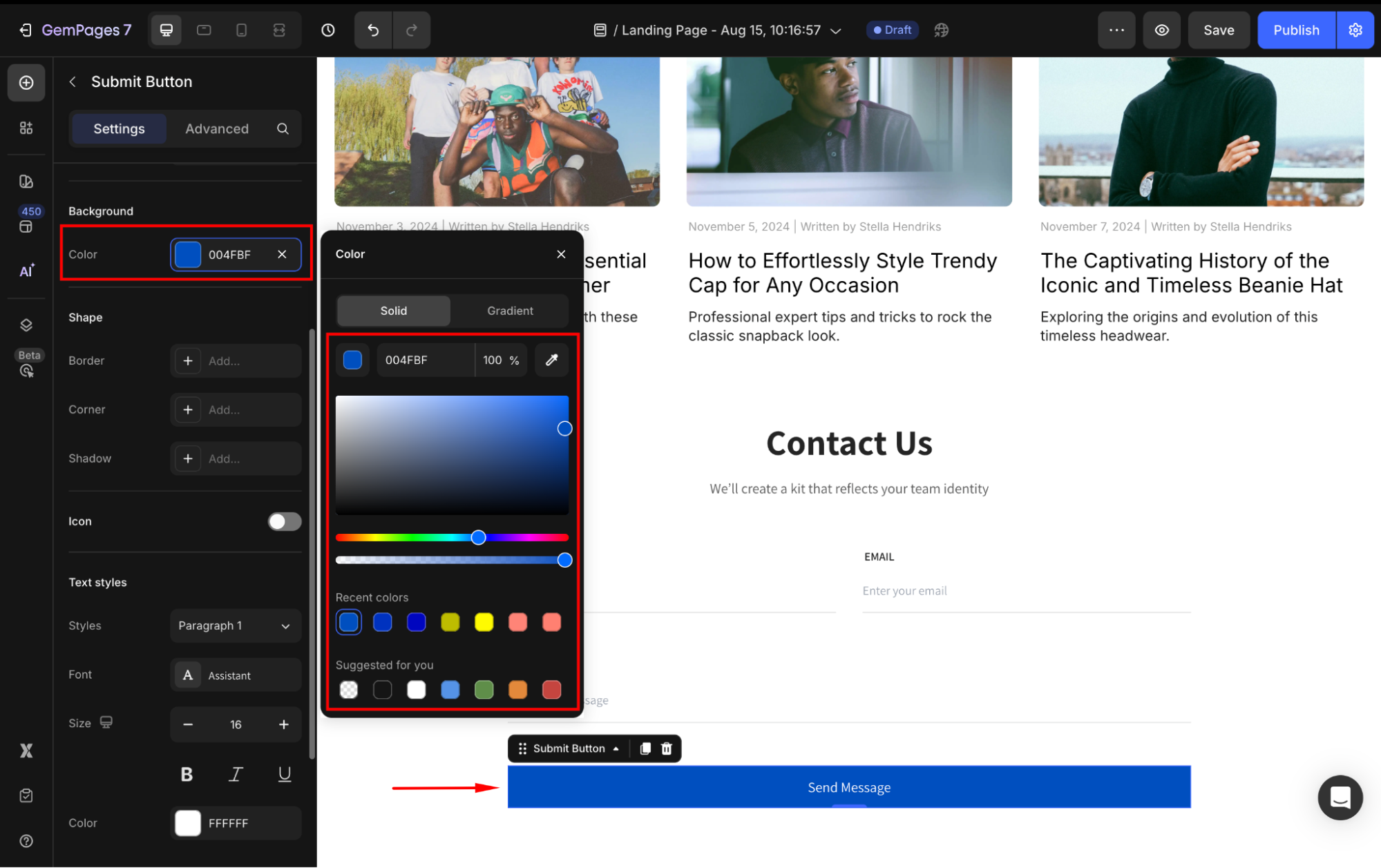 Set a solid or gradient color background for your Submit button. You can adjust the color by: