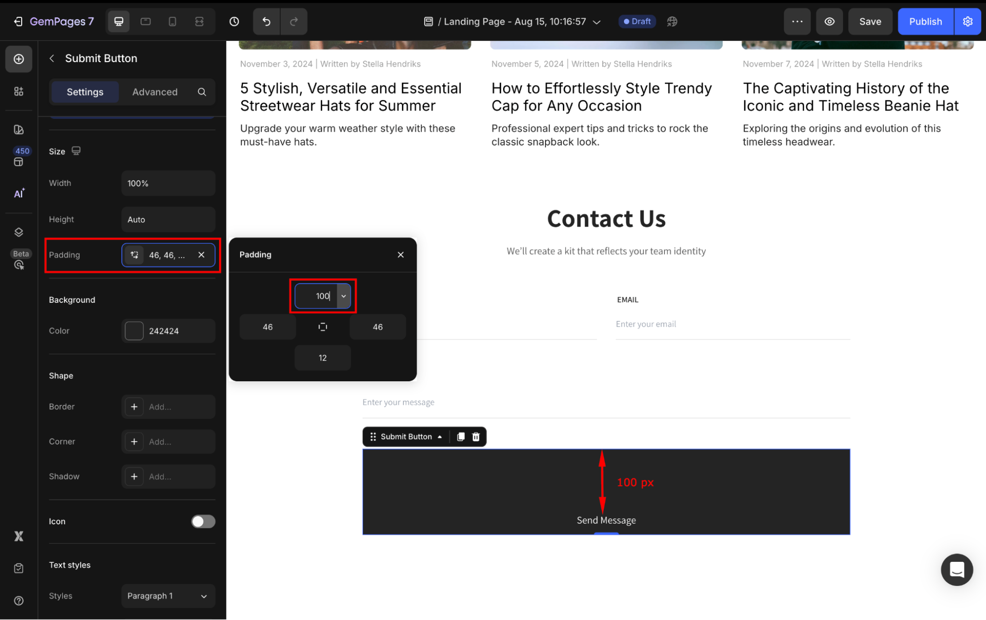 Height: Set the height to Fit Content (Auto) or a fixed pixel value.