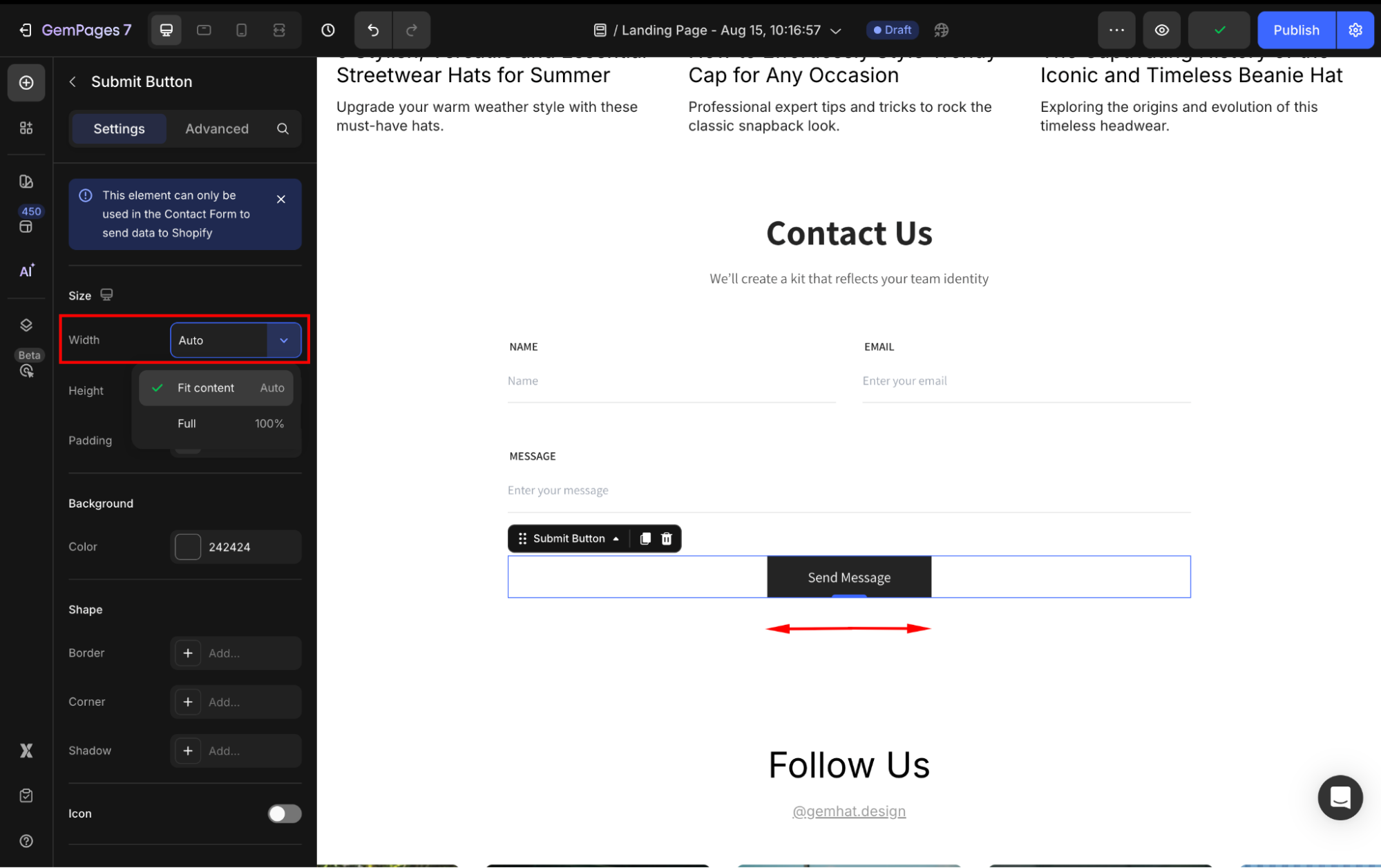 - Fit content (Auto): The button will adjust to the size of its content (text and icon).