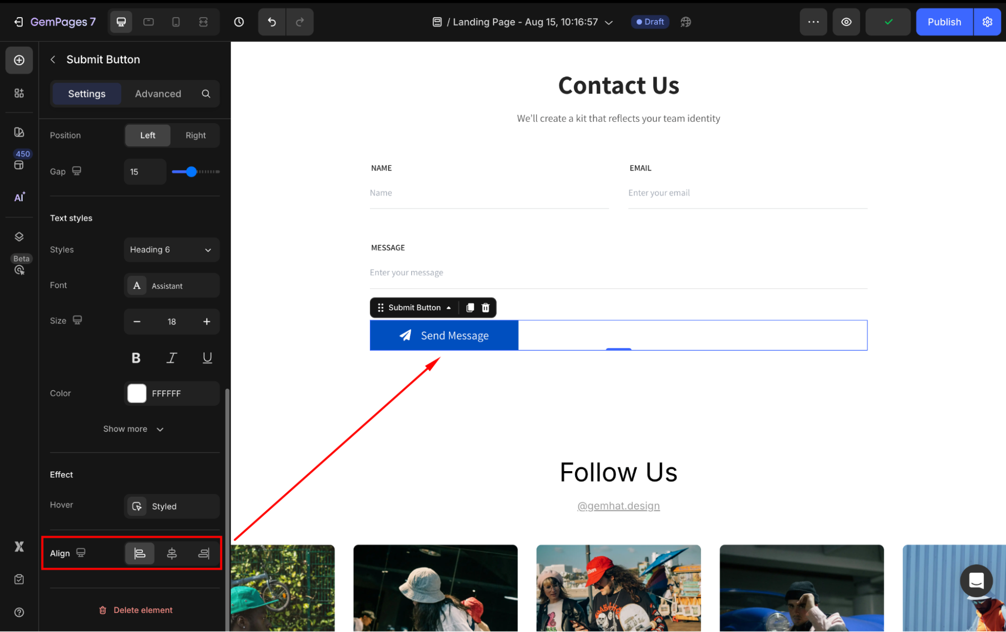 When the button’s width is set to 100% or greater, the horizontal alignment will be disabled. Otherwise, you can align the button to the left, center, or right.