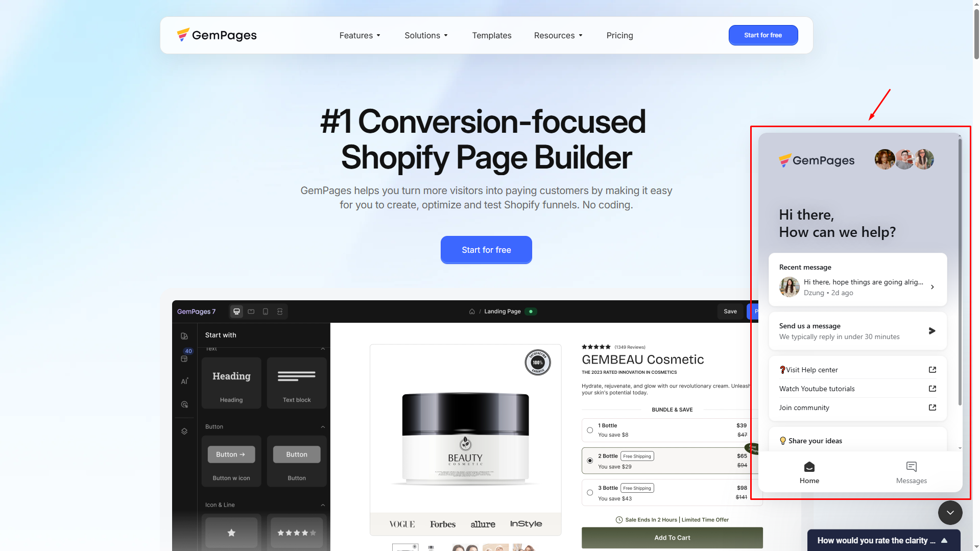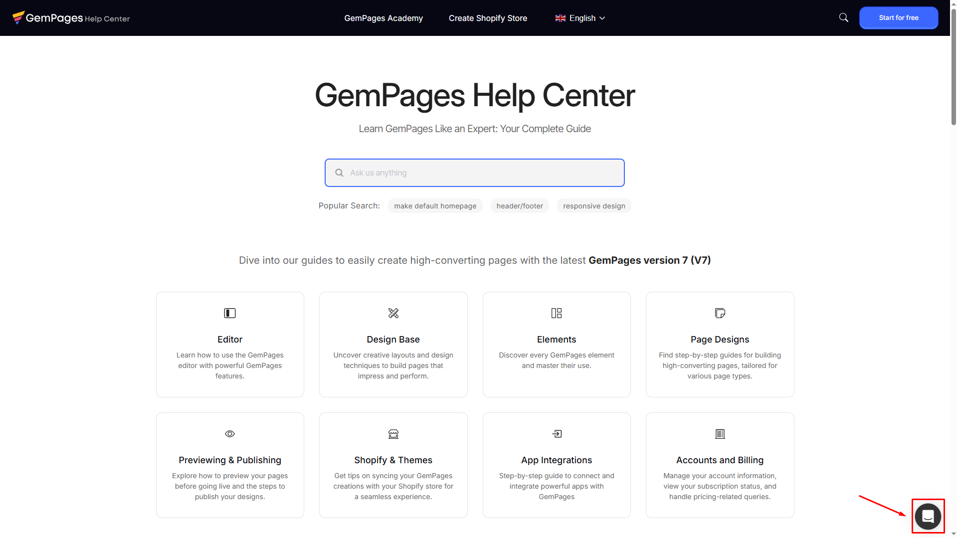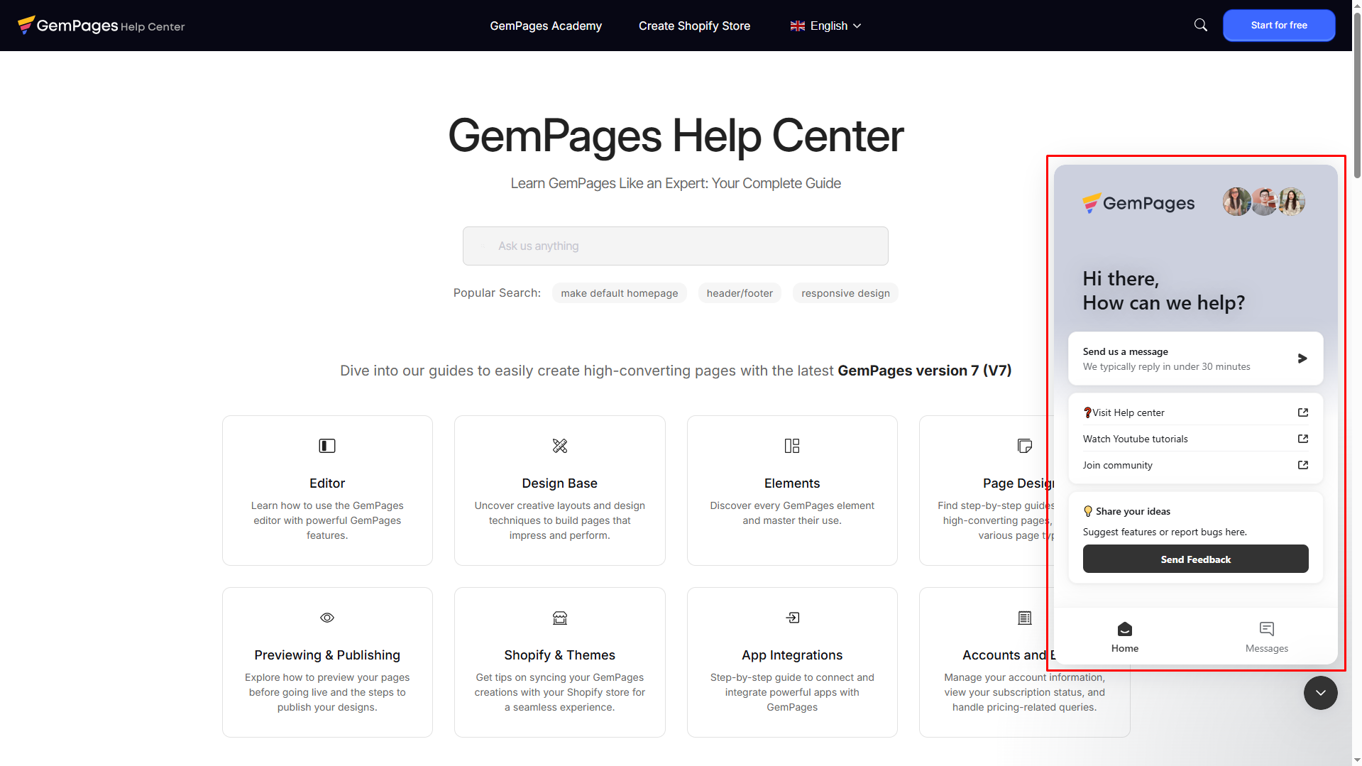 Besides Live Chat support and Email support, you can access other self-serve support from GemPages, including:
