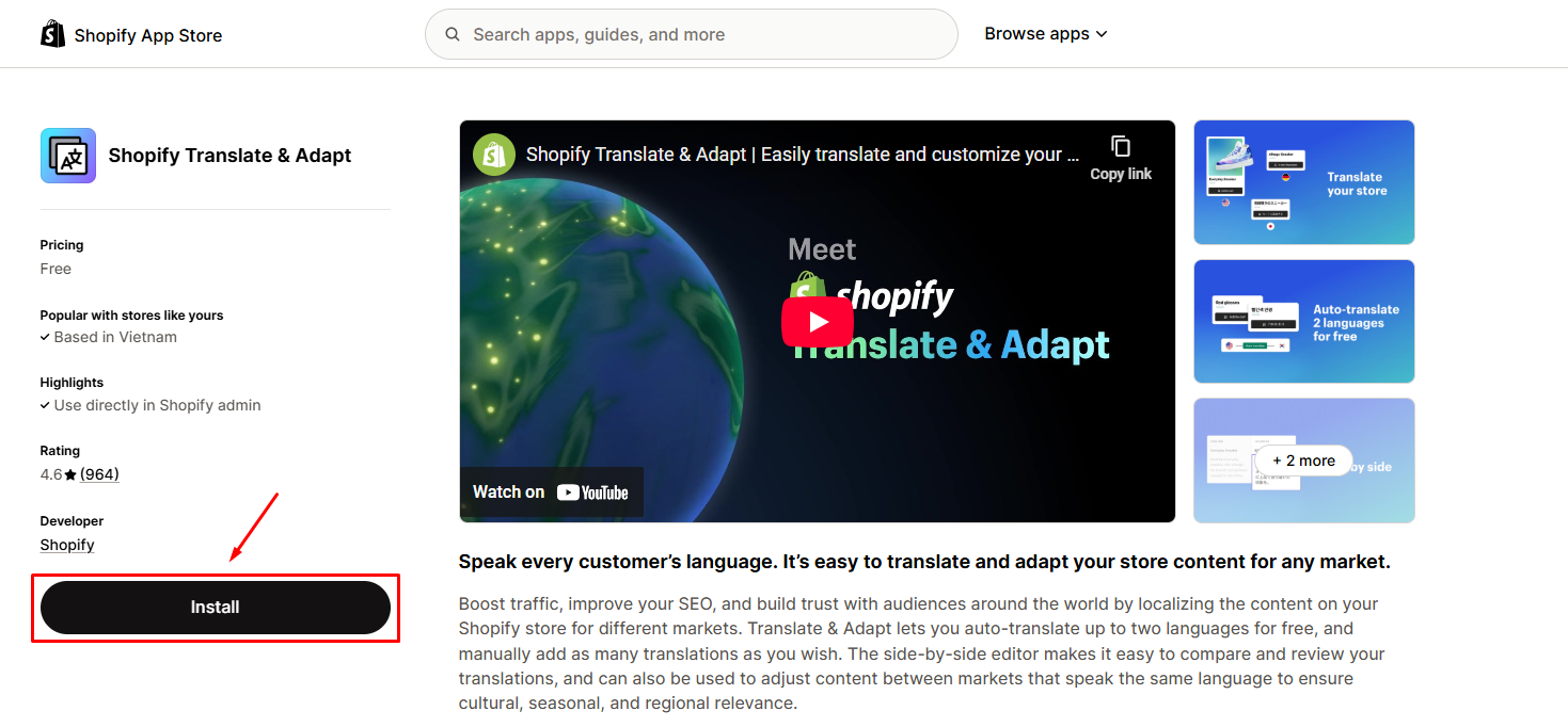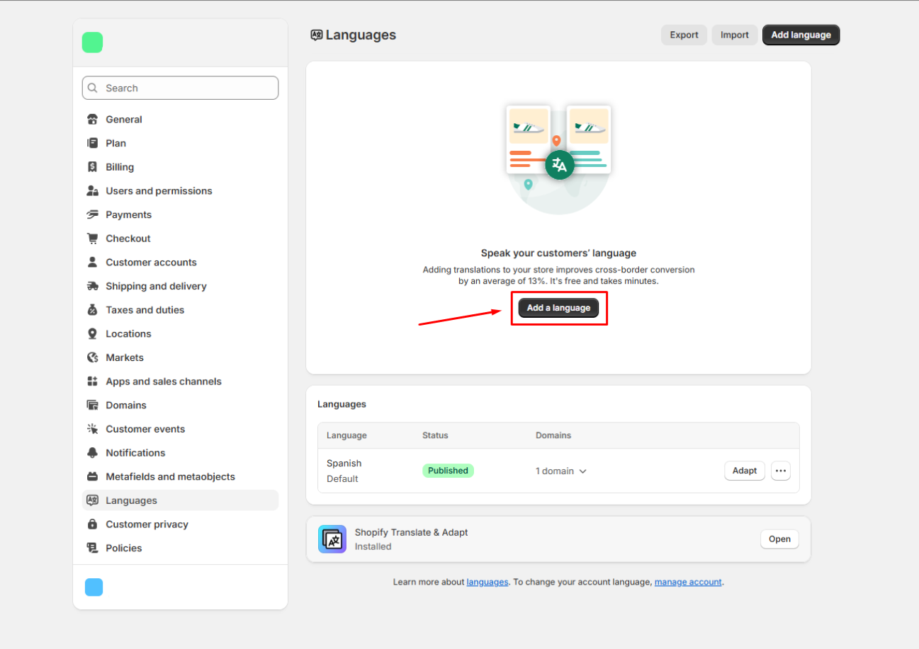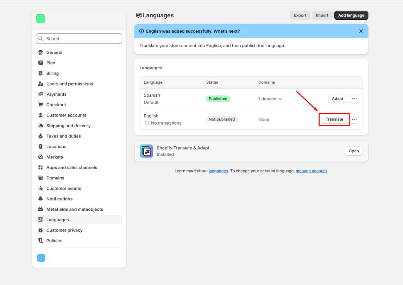 Follow these steps to use the Translate & Adapt app in your Shopify: