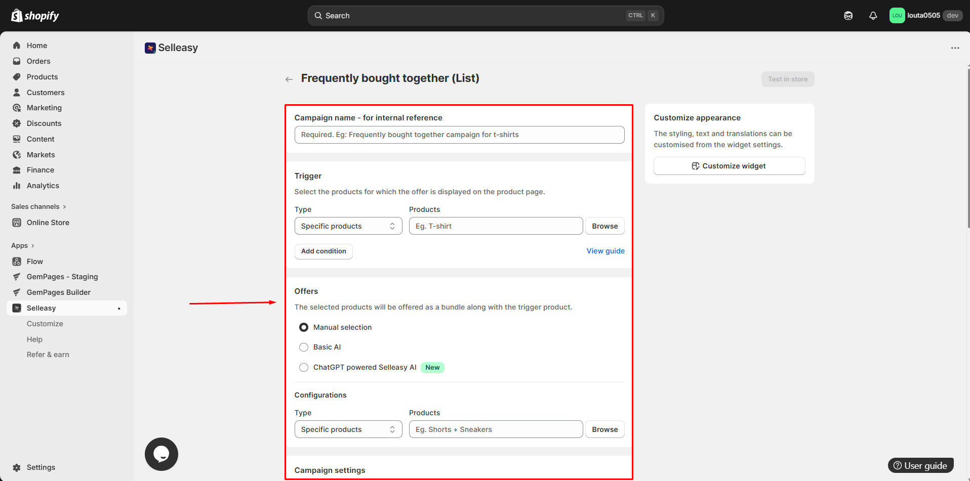 - Choose Offer Products: Select the recommended or bundled products to display.