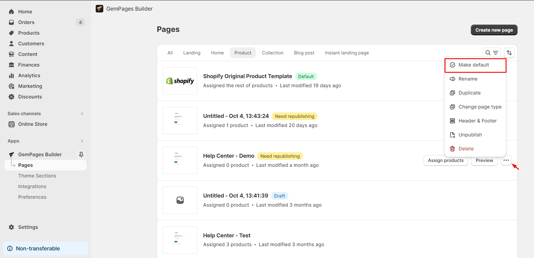 Step 1: Go to Pages > Product to locate all your product pages built with GemPages’ Product Page Templates.