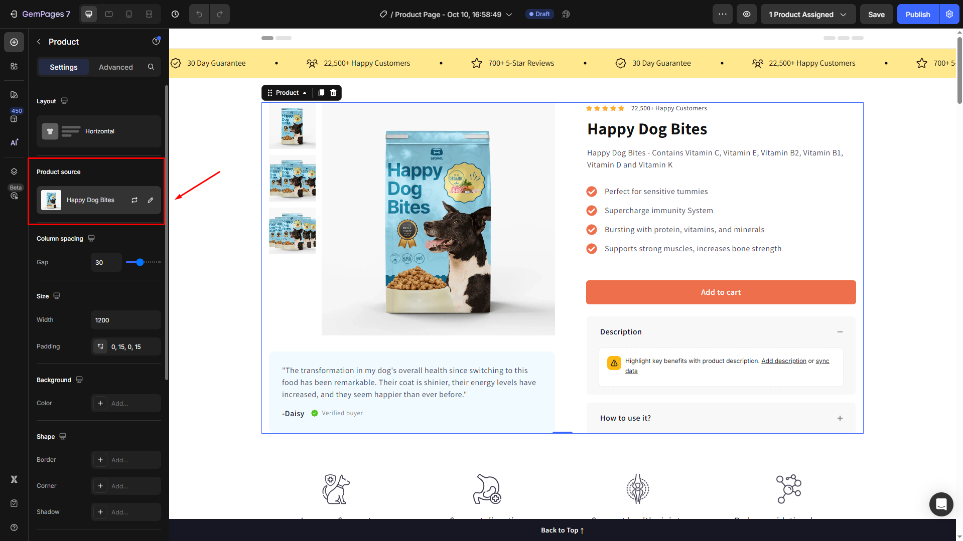 By default, Shopify only lets you use one product page template for all products. This can be limiting if you want unique layouts for different product types. With GemPages, you can easily assign a product to a template or set a default template for your entire store.