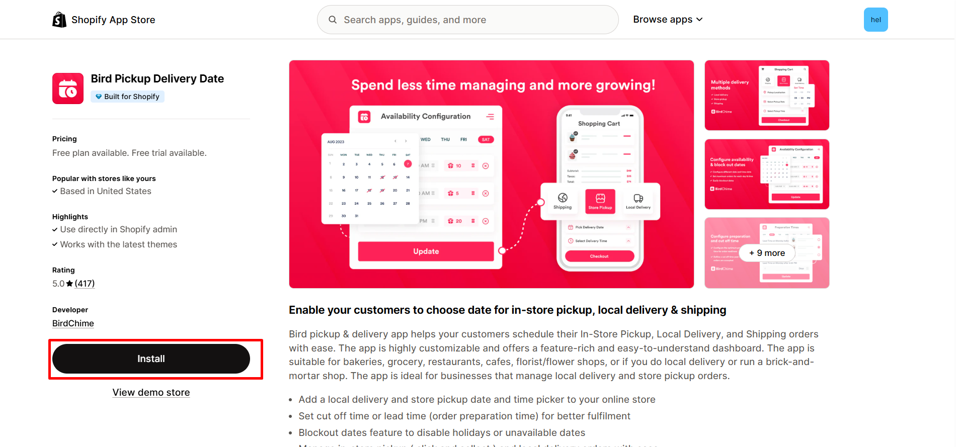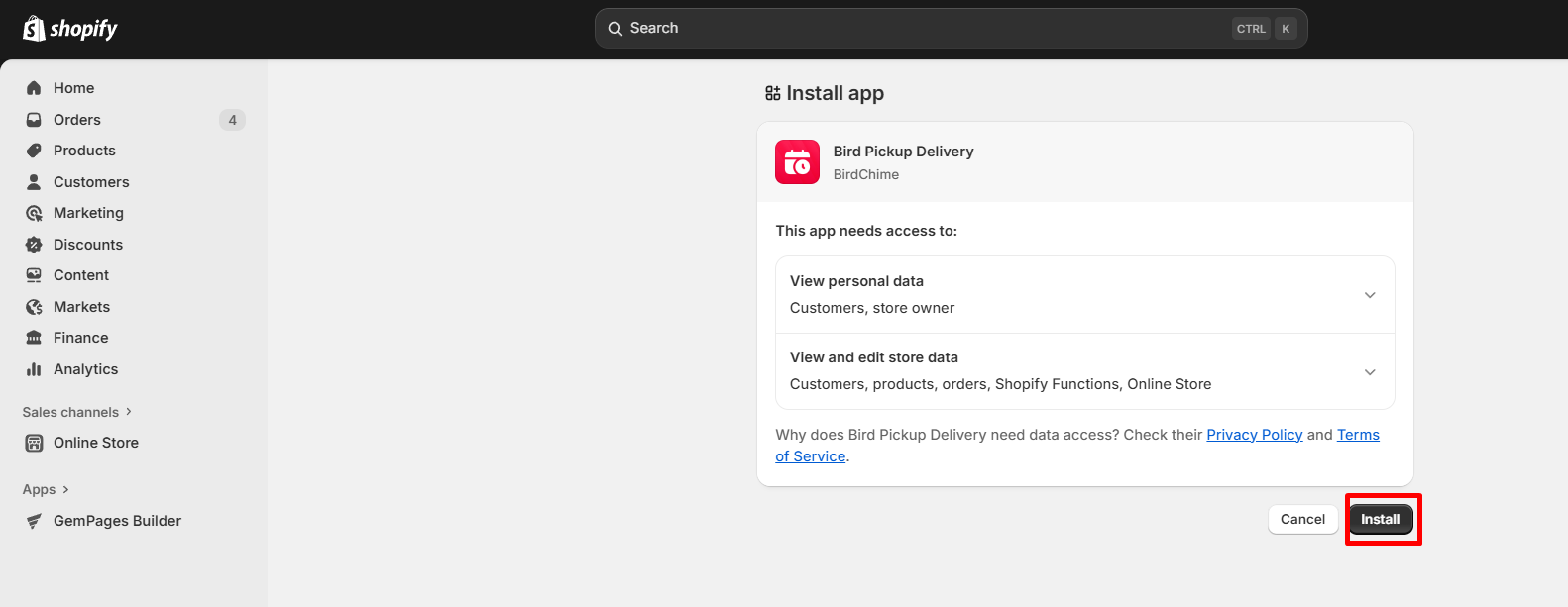 Step 1: Install Bird Pickup Delivery Date in the Shopify App Store.