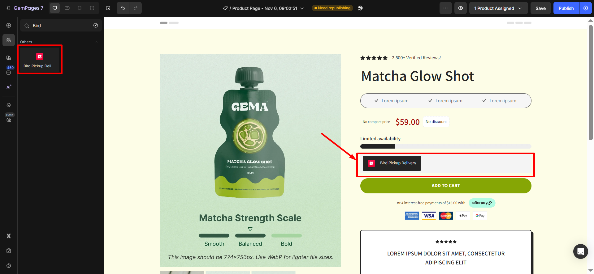 How to Add the Bird Pickup Delivery Date to GemPages v7?