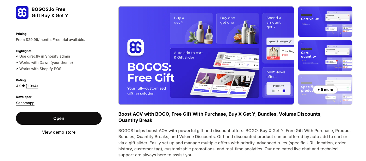 Step 1: Install BOGOS from the Shopify app store.