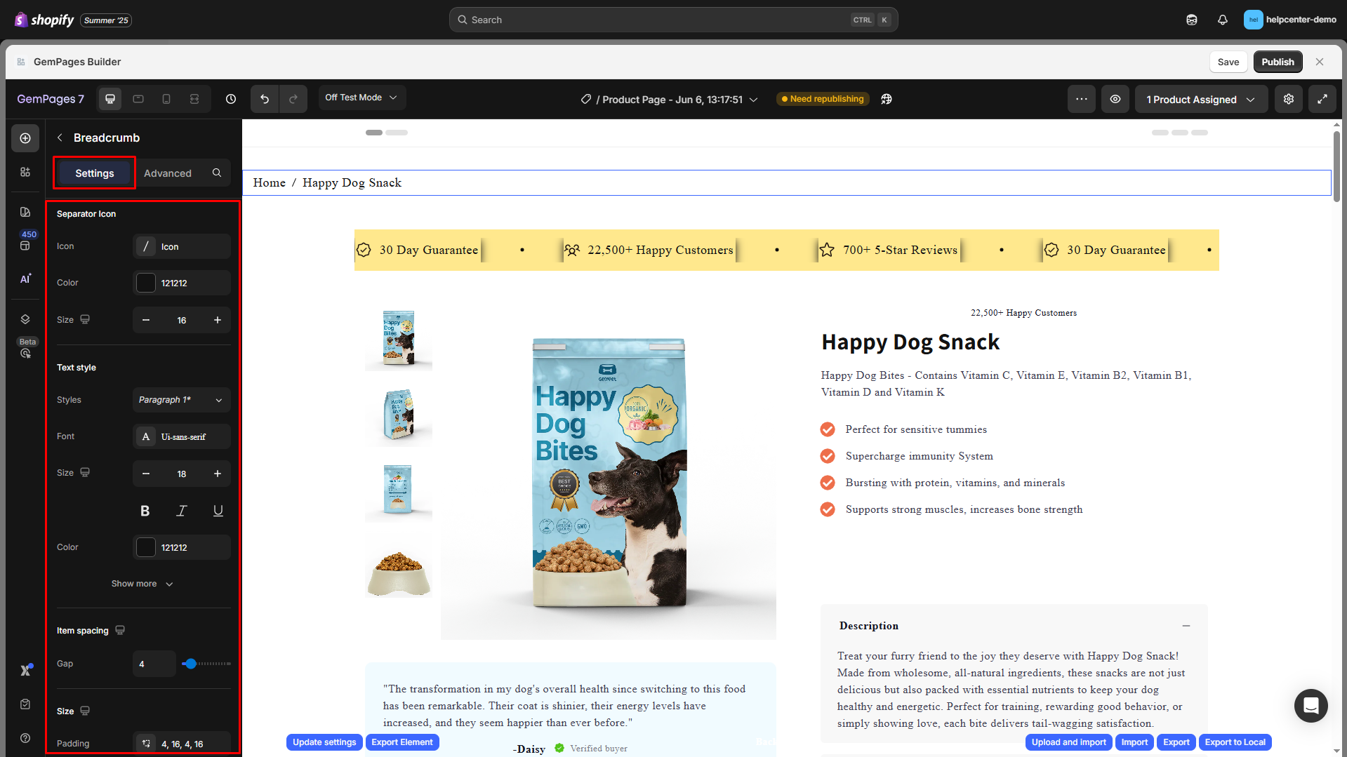 We will go over all the settings for the Breadcrumb element in GemPages Editor Version 7 in the section below.