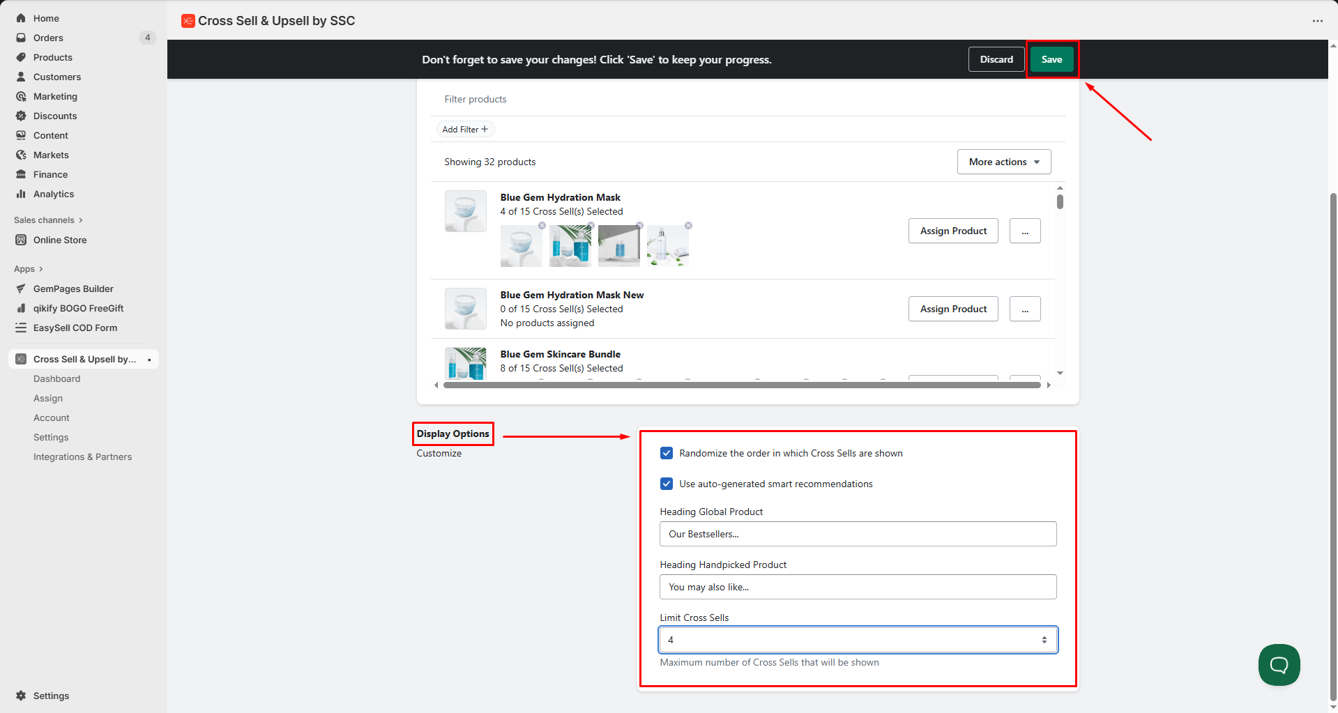 If you need any assistance, reach out to Cross Sell & Upsell by SSC support.