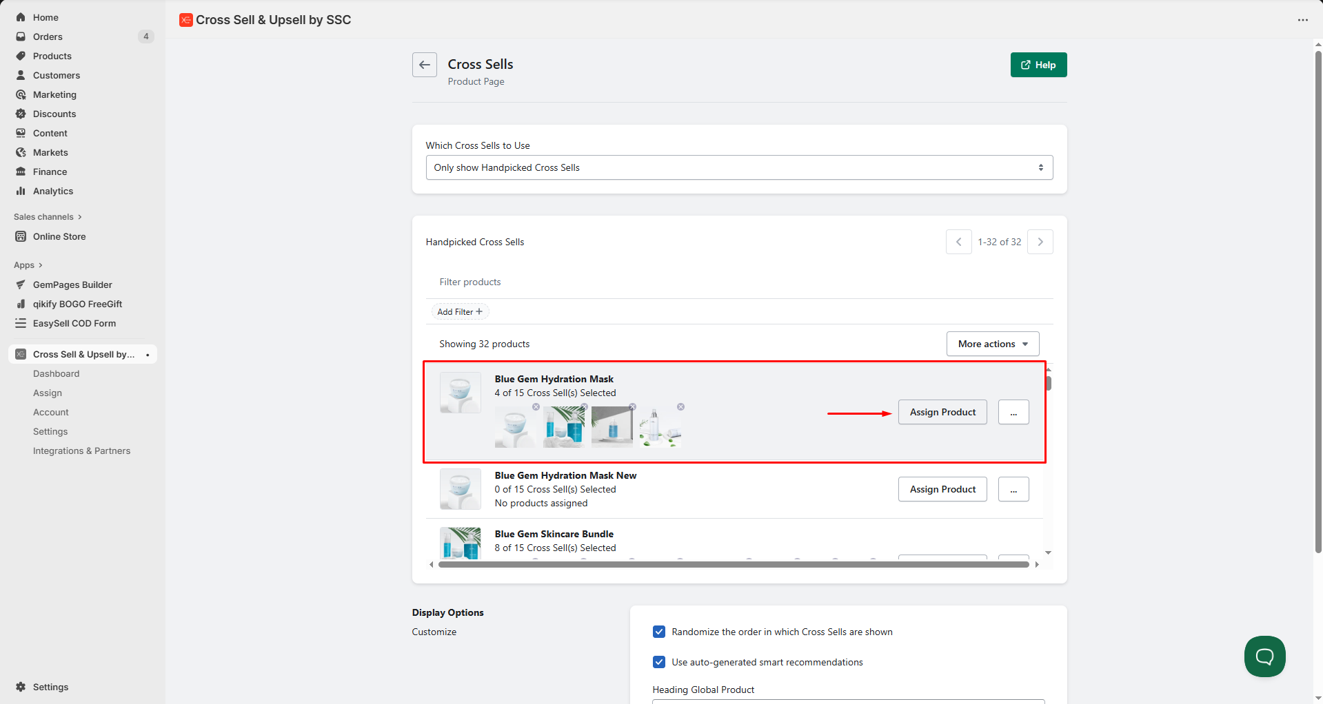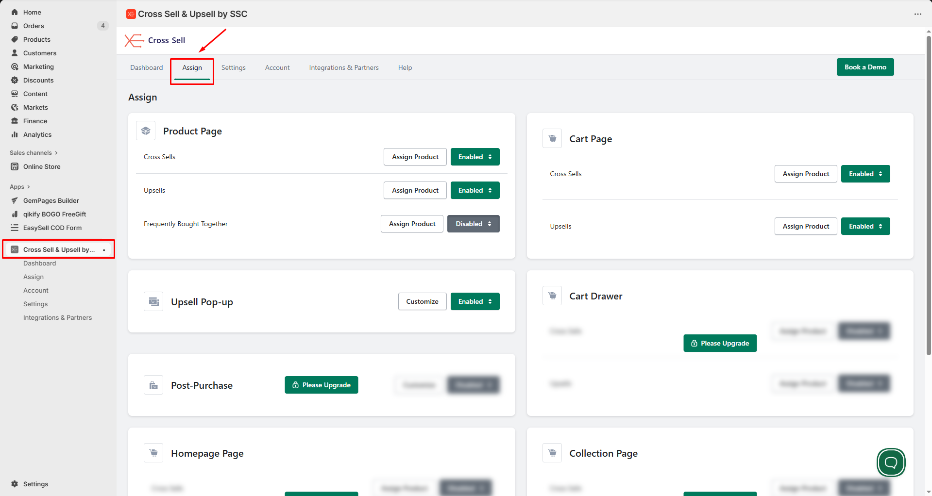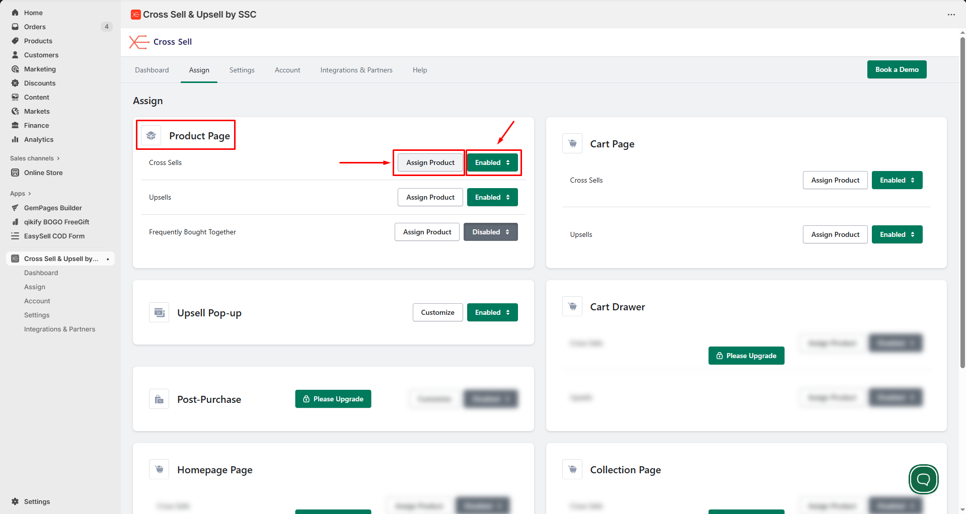 Step 2: Pick the page where you’d like the cross-sell items to appear, then click Assign Products.