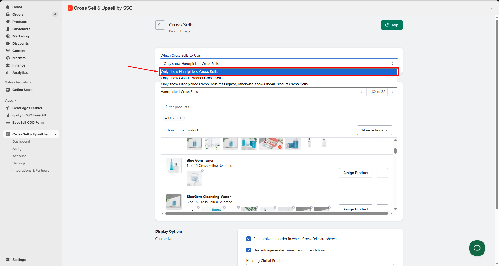 For example, we choose the Only show Handpicked Cross Sell.