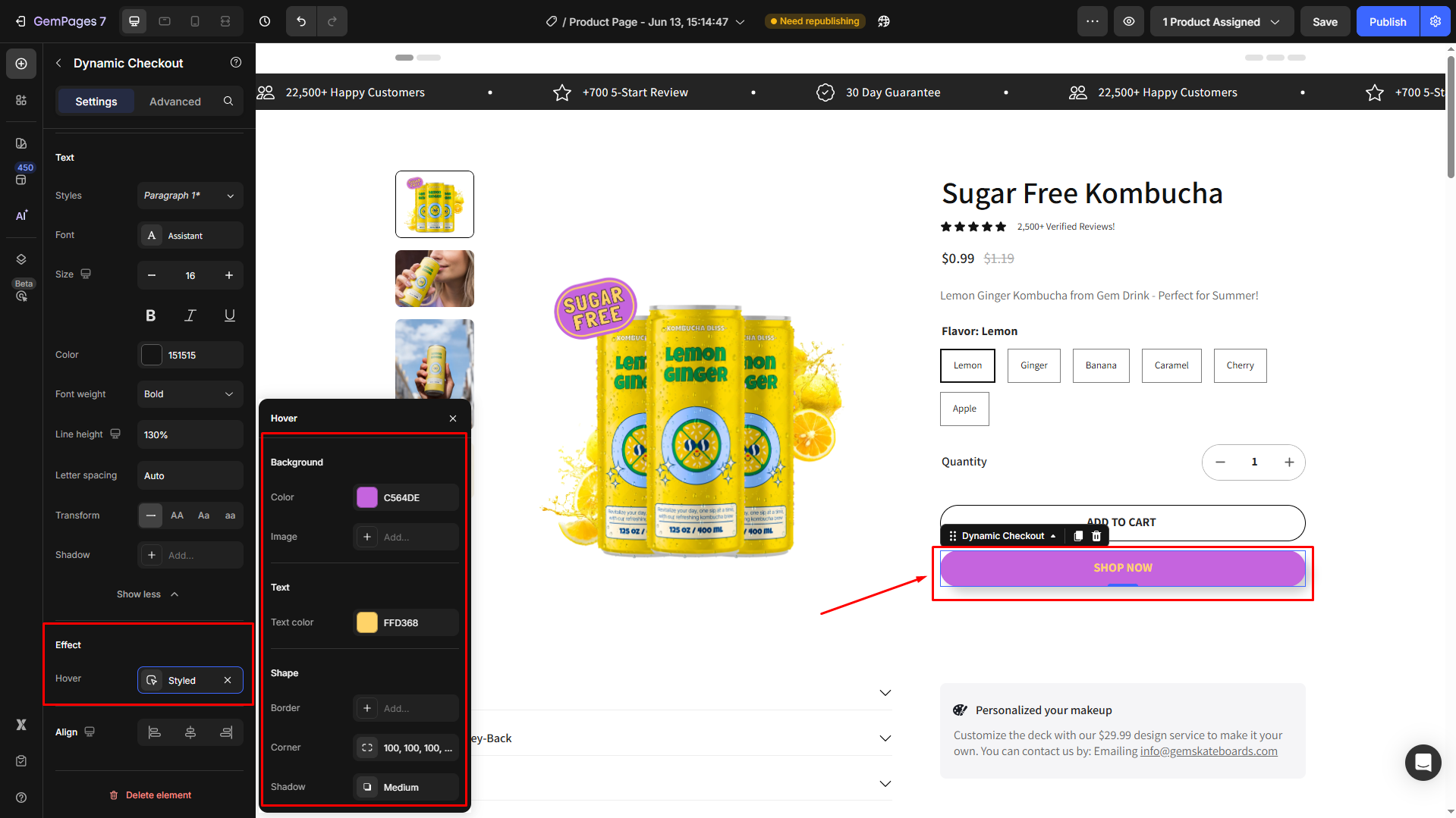 From here, add a hover effect to your button. Customize how the button looks when visitors hover over your button.