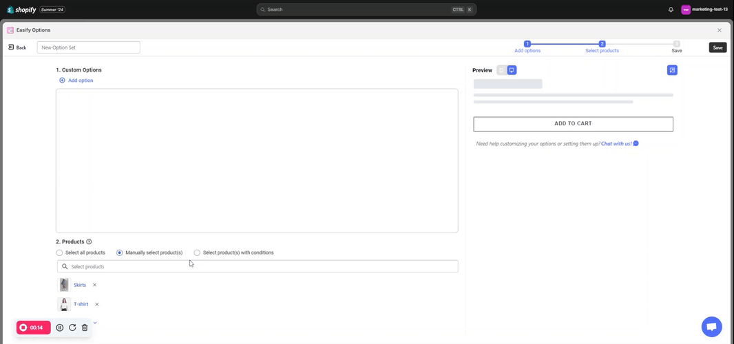 Step 4: Select products to which the current option set will be applied.
