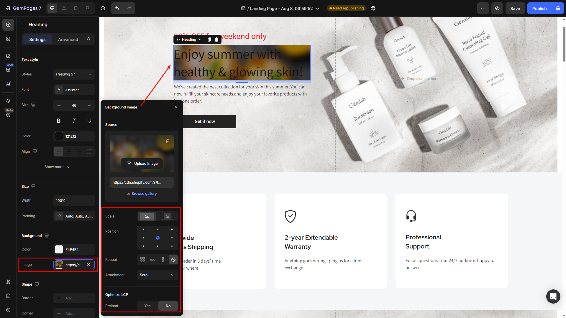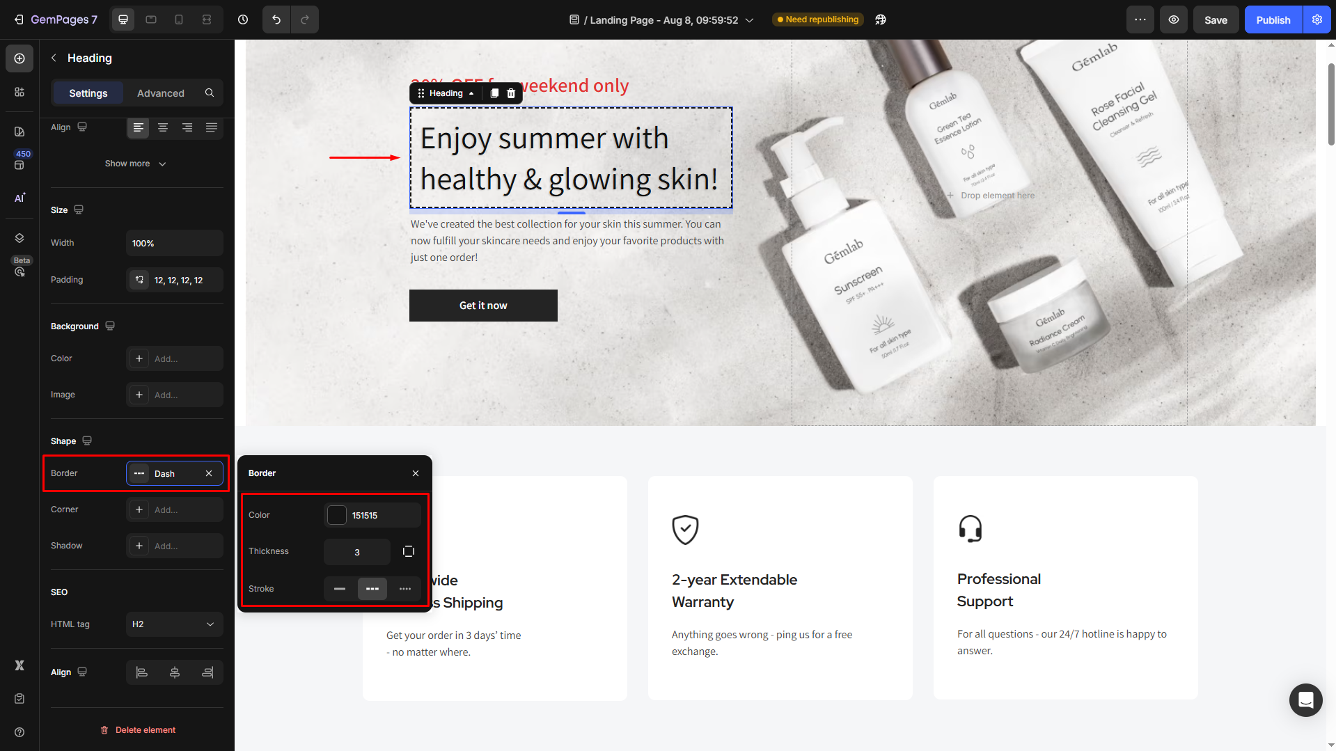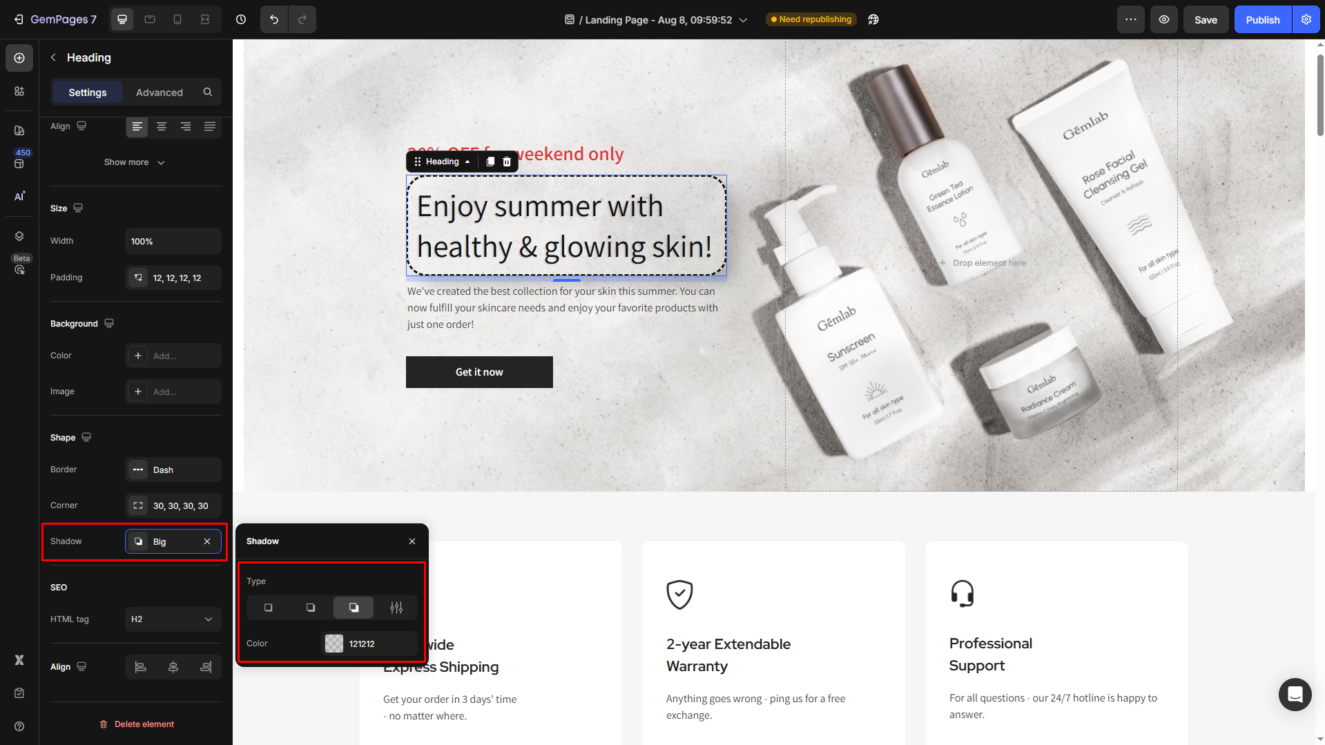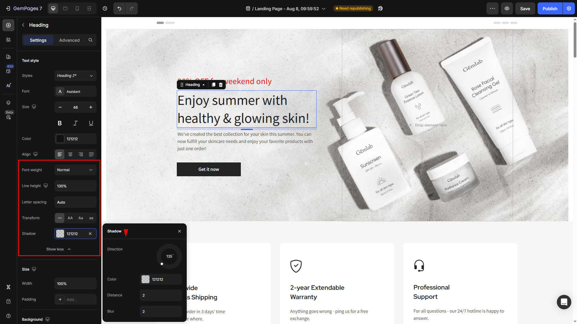 - Shadow: Add depth by enabling a shadow effect around your heading.
