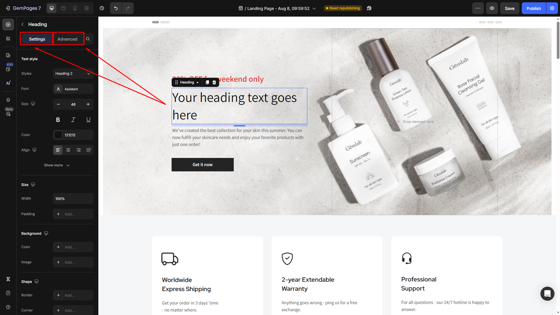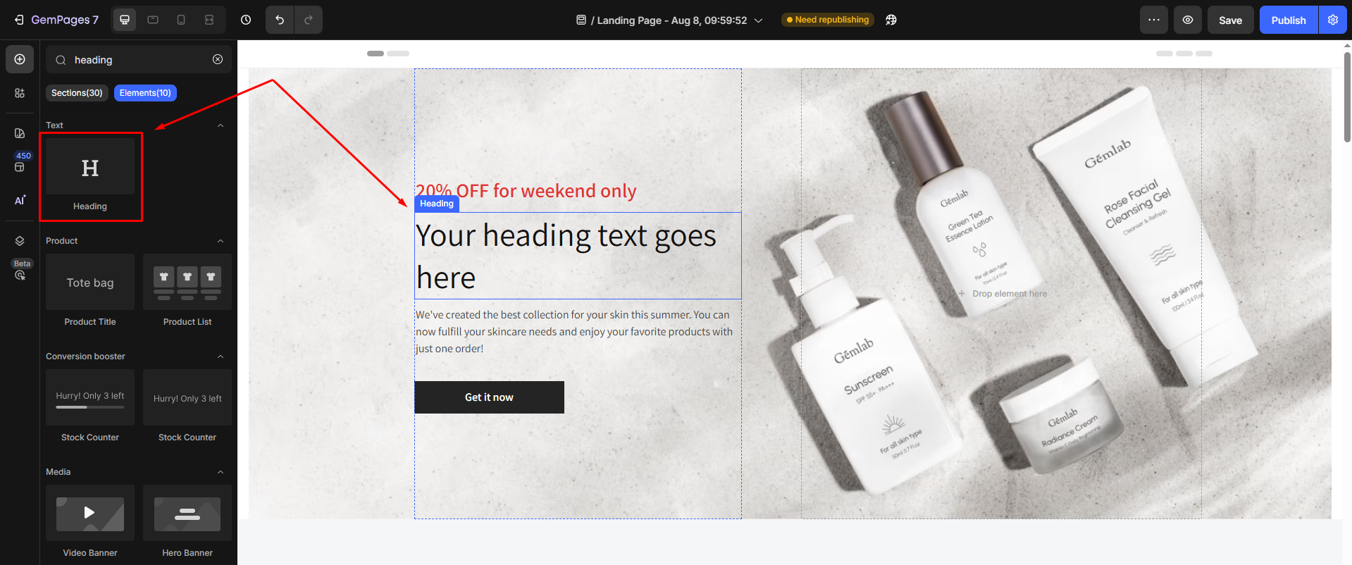 The Heading Element in GemPages allows you to add titles and subtitles to your web pages. It focuses on showcasing headings with clear and visually appealing styles, helping visitors quickly understand the most important information.