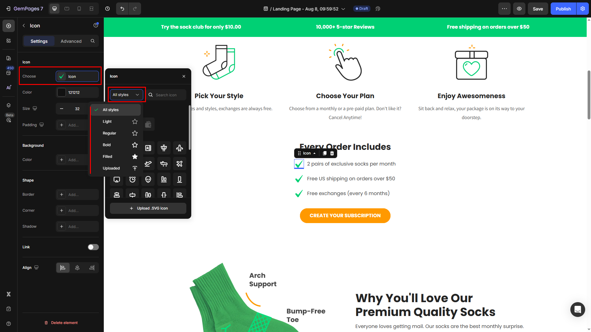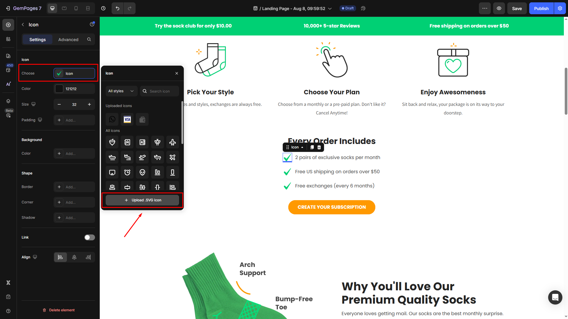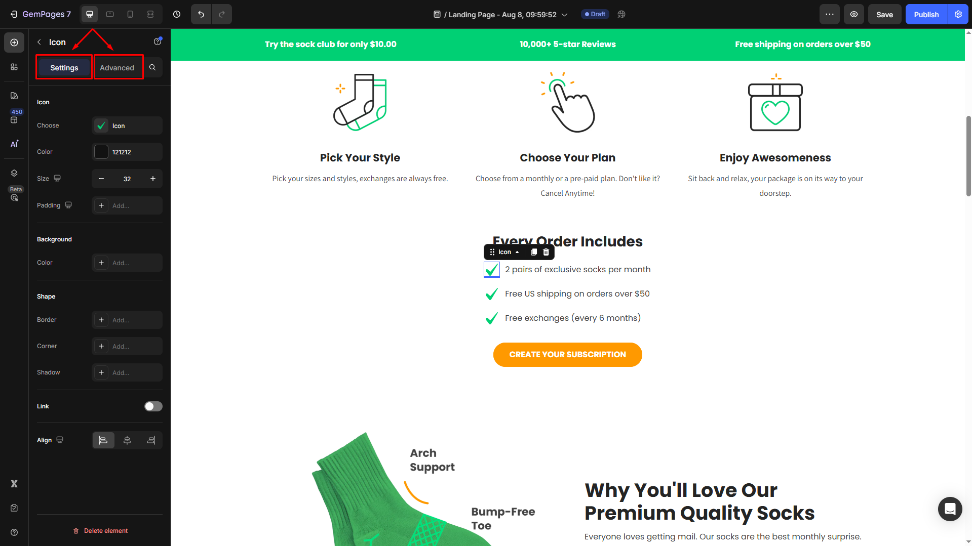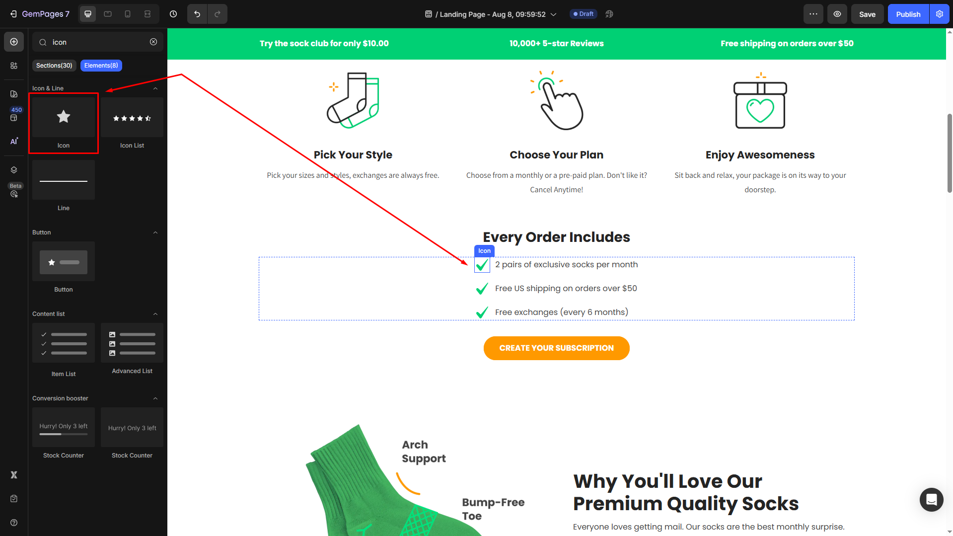 Follow these steps below to add an Icon Element to your page using GemPages Editor v7: