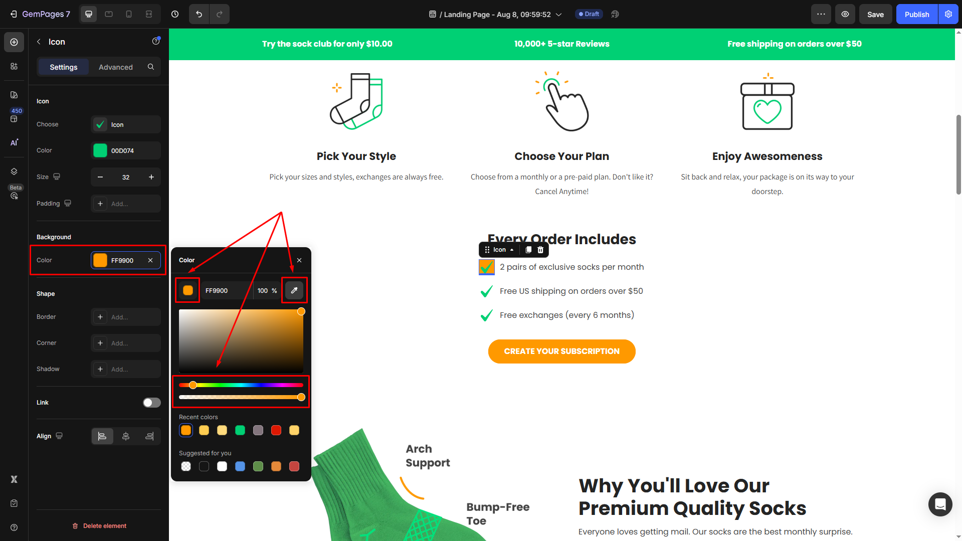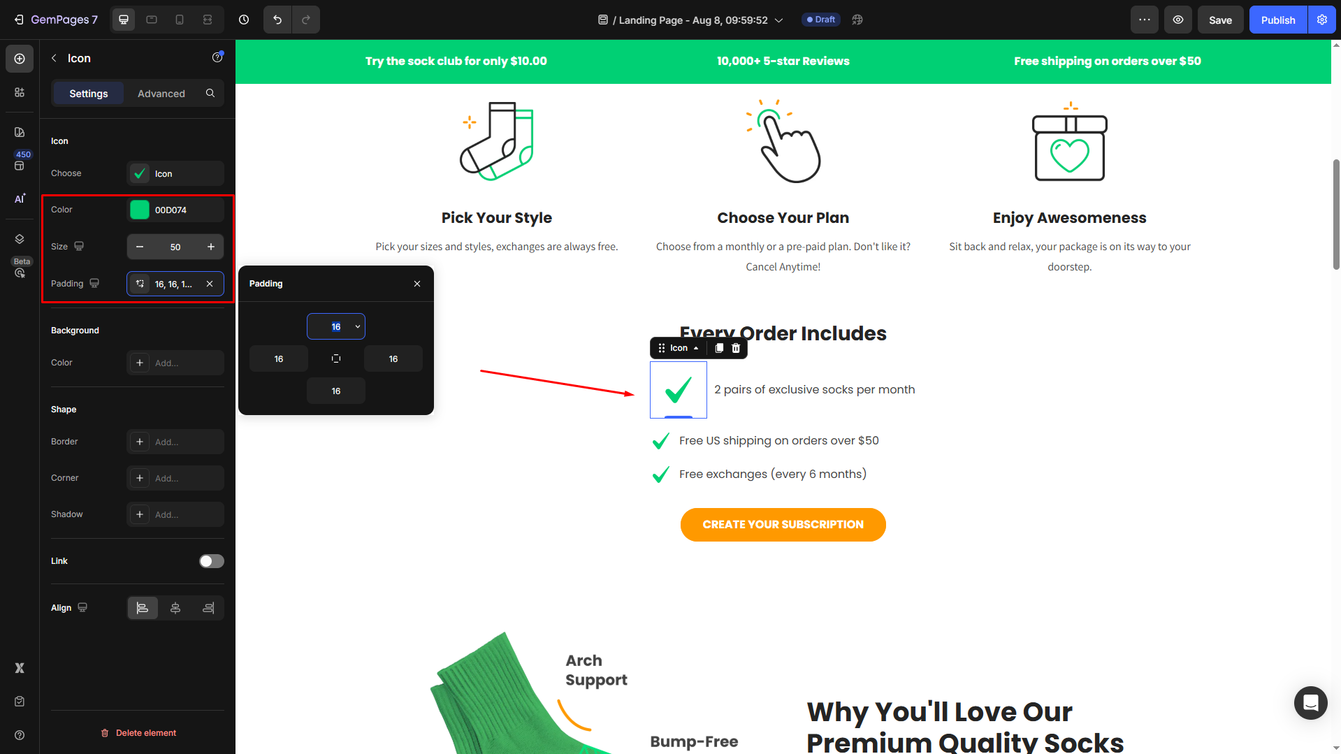 Then, change the icon color your way, and adjust the size and padding of the icon to align with your brand design.