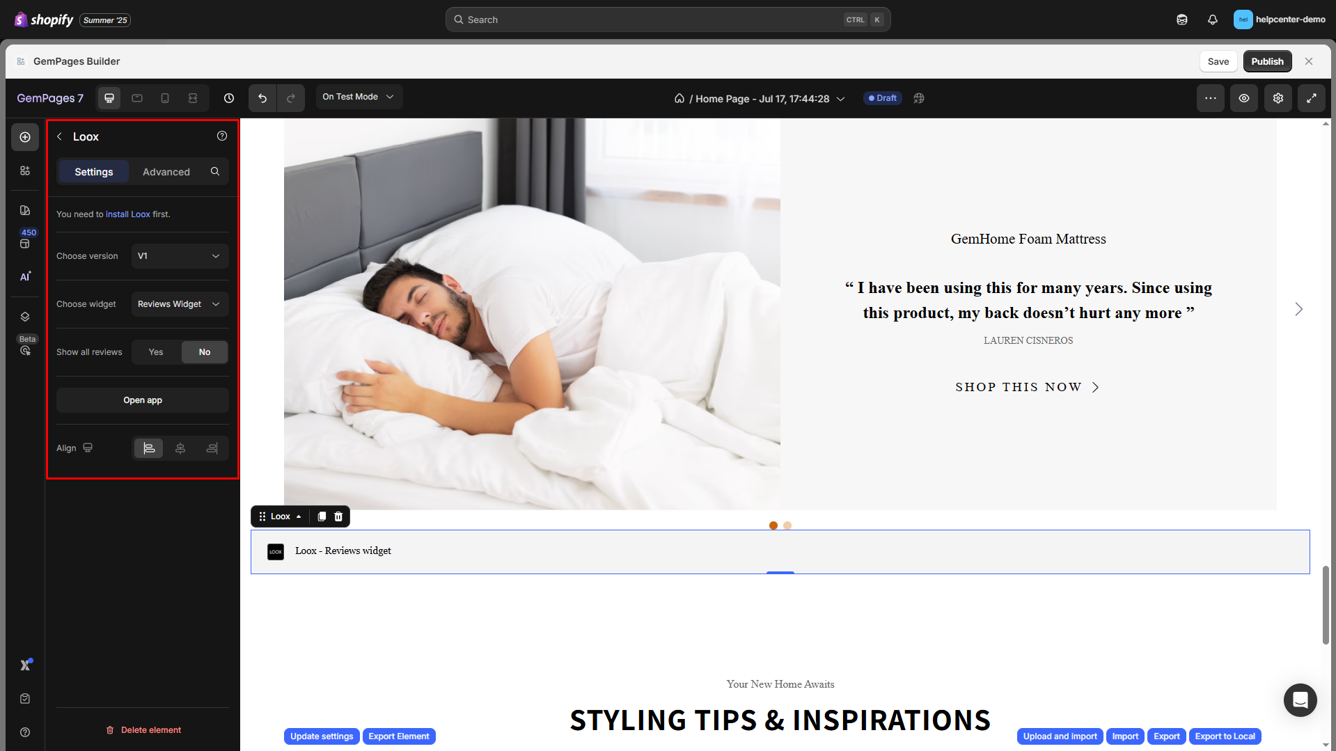 In this guide, GemPages uses the Loox Reviews Shopify app to practice.