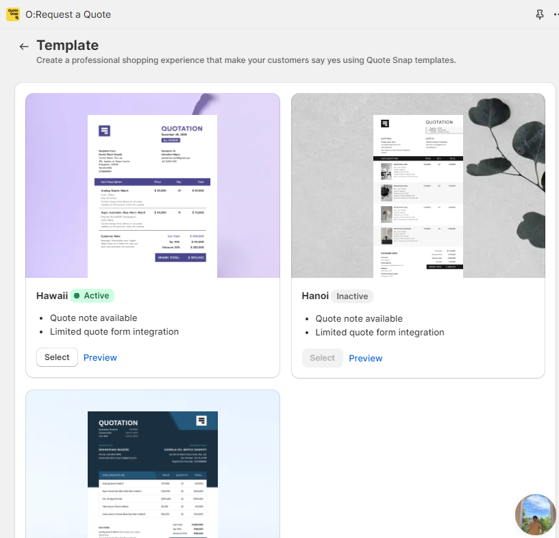 Click Edit setting and select a PDF template for your quote.