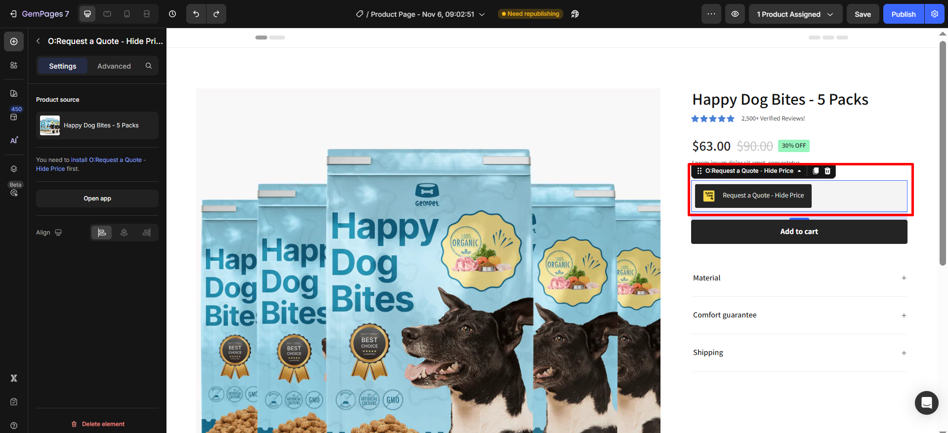 How to Add the Q:Request A Quote & Hide Price to GemPages v7?