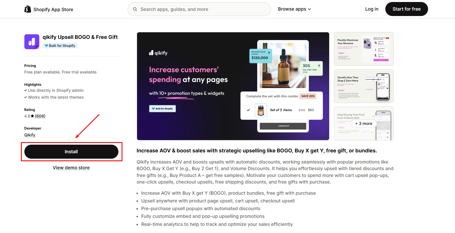 Step 1: Download and install Qikify – Upsell & Free Gifts from the Shopify store.