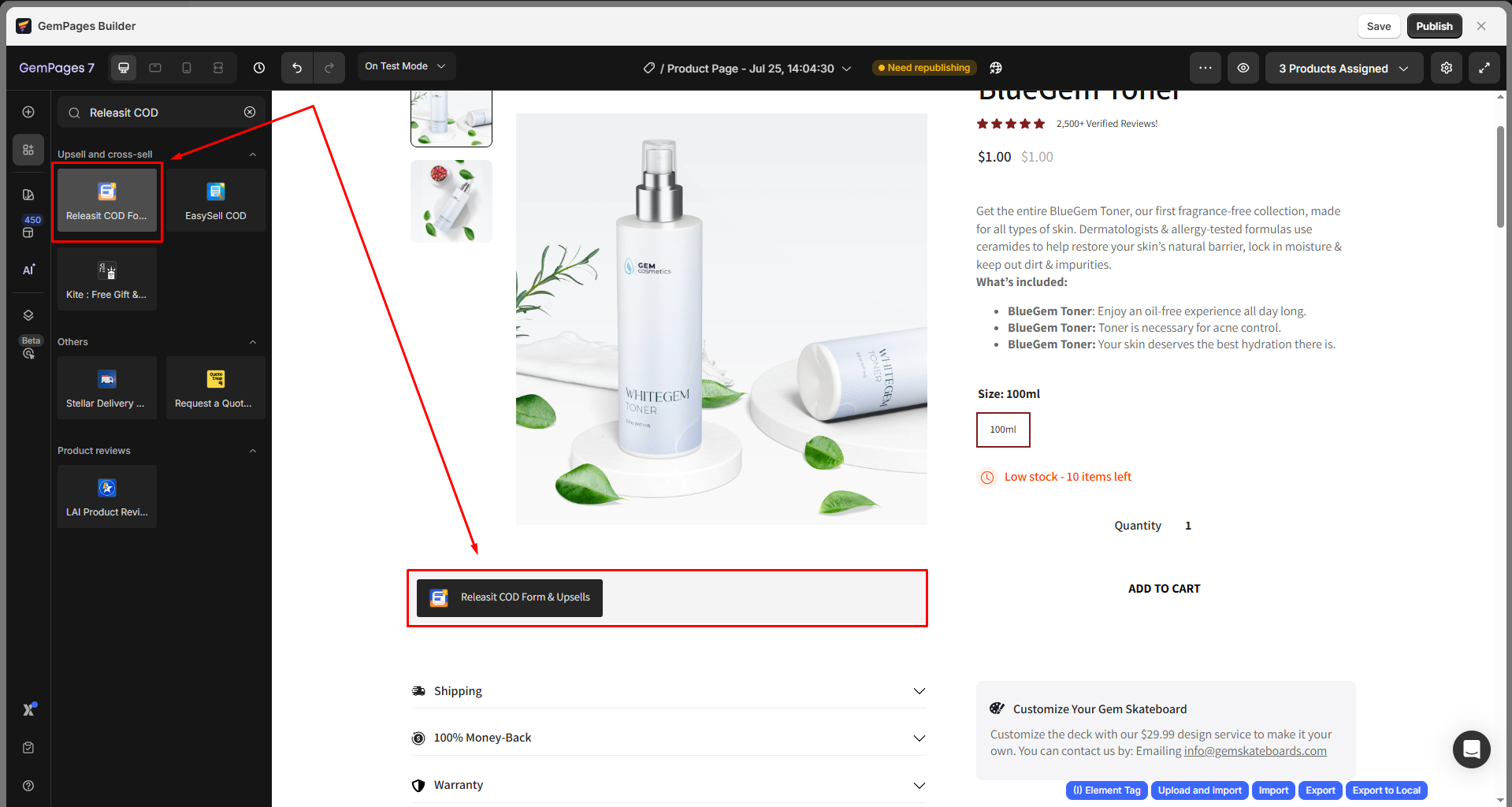 How to set up the Releasit COD Form & Upsells with GemPages?