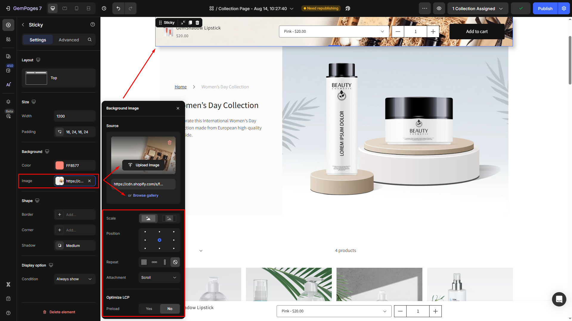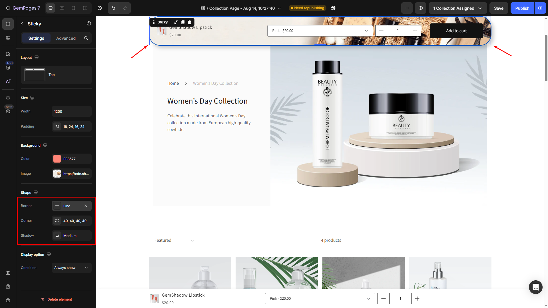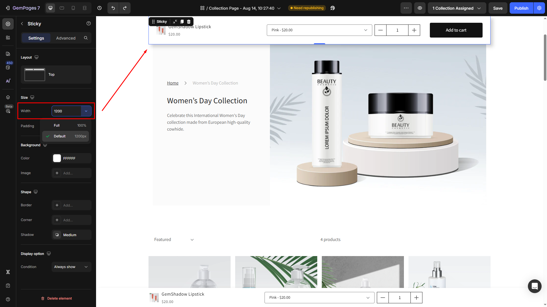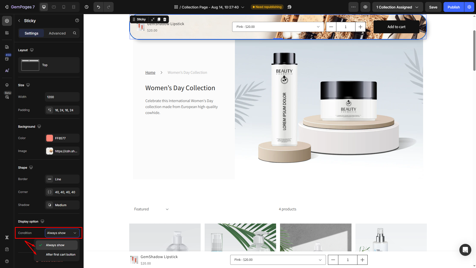 To incorporate a Sticky Add-to-Cart in GemPages Editor v7, please follow these steps: