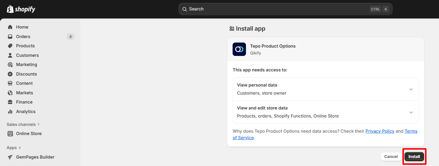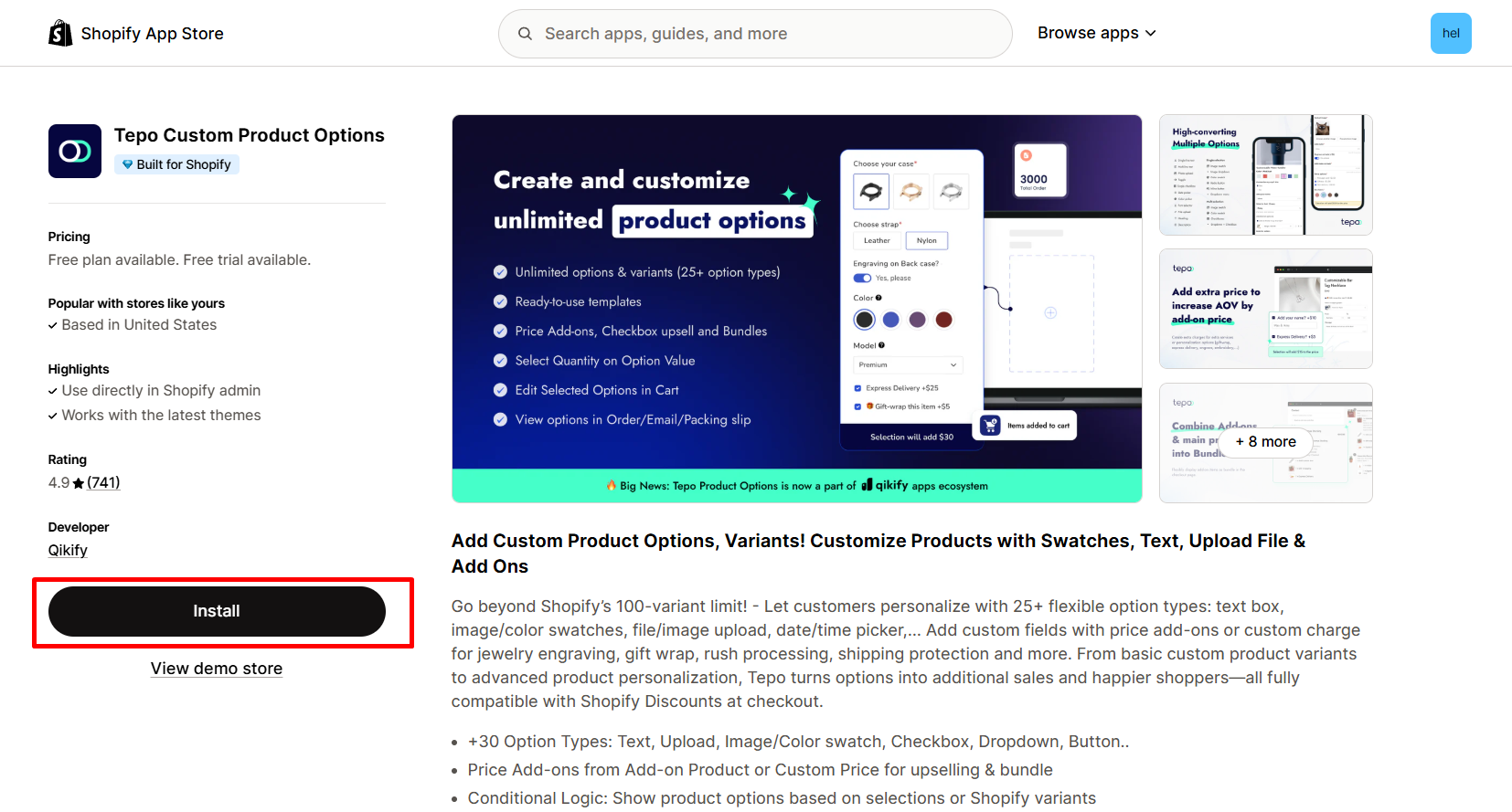 Step 1: Install Tepo Custom Product Options in the Shopify App Store.